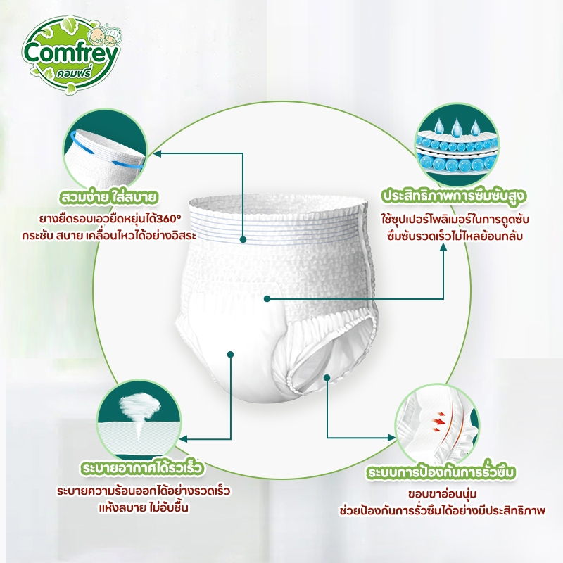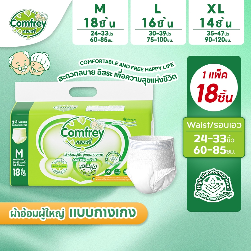 [M-XL 1แพ็ค] Comfrey แพมเพิสผู้ใหญ่แบบกางเกง ราคาประหยัด ไซส์ M-XL x1แพ็ค
