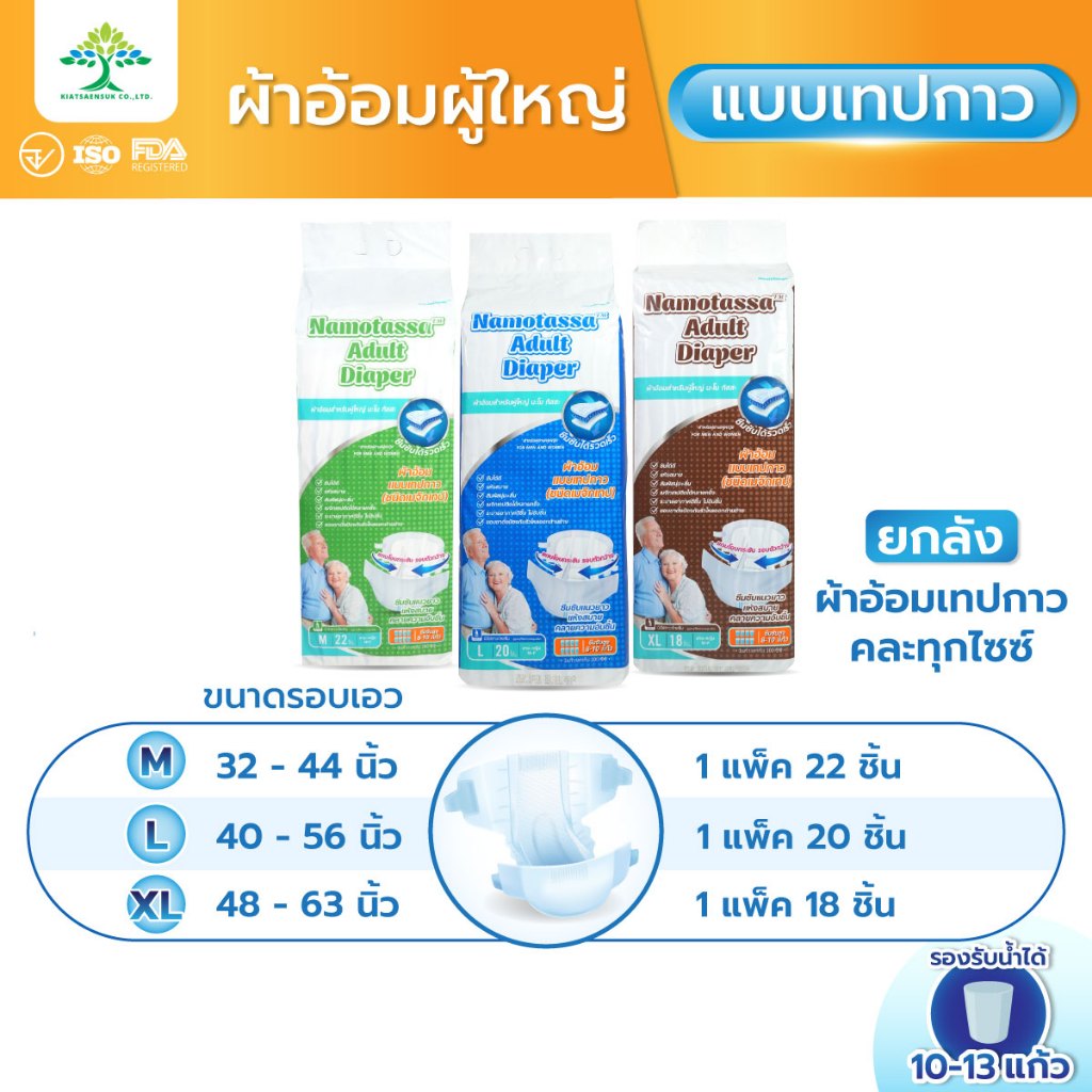 (ยกลัง 4 แพ็ค) Namo tassa ผ้าอ้อมสำเร็จรูปแบบเทป ผ้าอ้อมผู้ใหญ่ นะโม ทัสสะ Adult Diapers