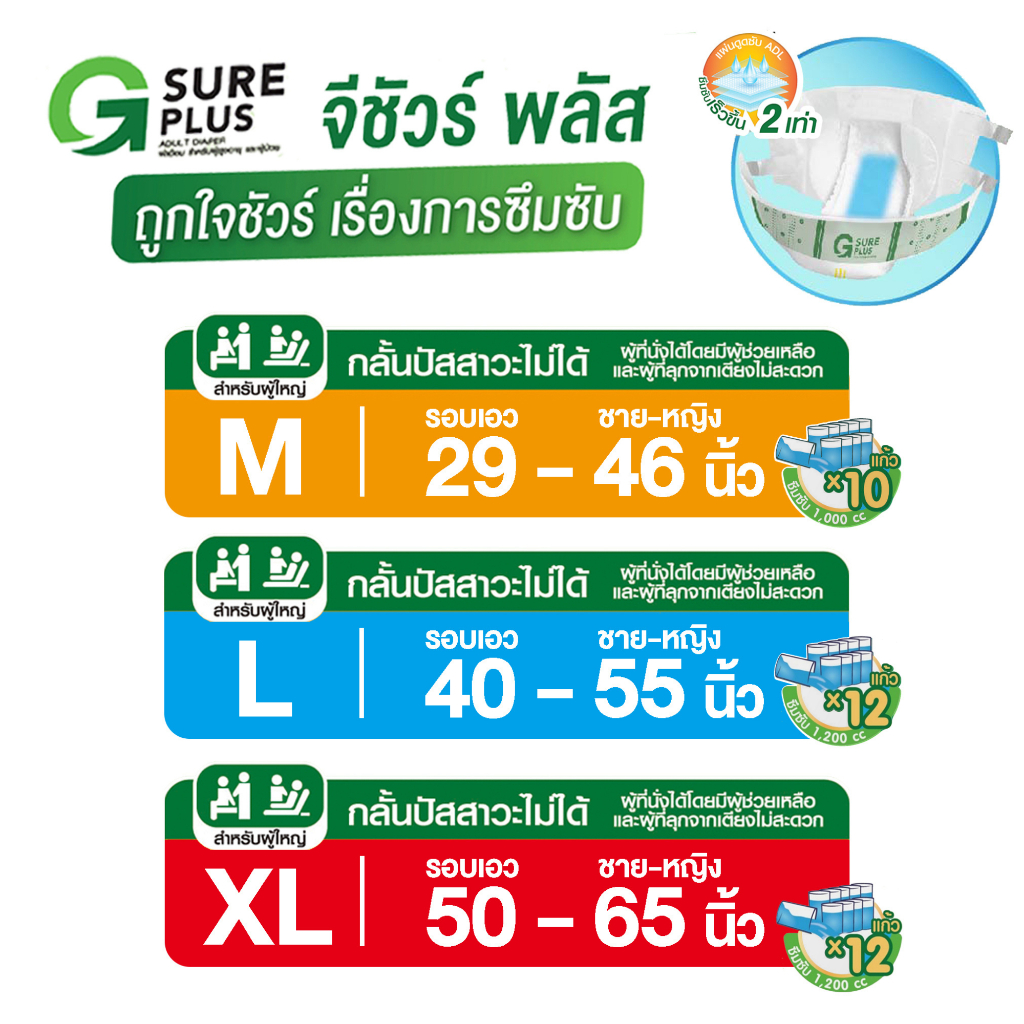 [KSG Official] จีชัวร์พลัส ผ้าอ้อมผู้ใหญ่ แบบเทปกาว Size L 24ชิ้น G Sure Plus Diaper TAPE L 24 Pcs.