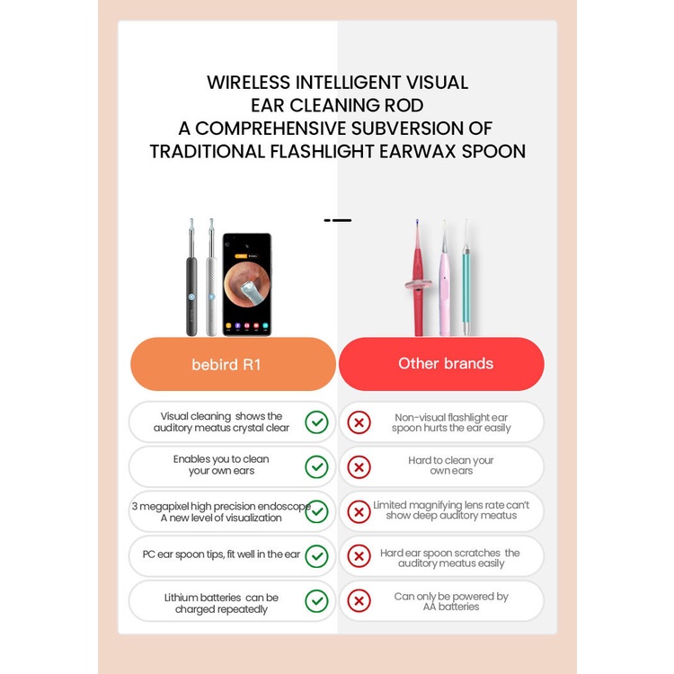 (โล๊ะ แบตเสื่อม) ไม้แคะหูไร้สาย Bebird R1 / R3 / Note 3 Pro Max New แบบอัจฉริยะ ความแม่นยําสูง 300W พร้อมกล้องส่อง 360 ํ