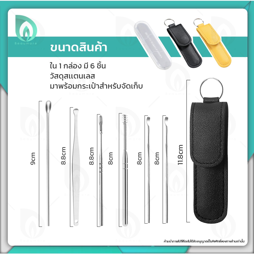 ?พร้อมส่ง? BEAUMORE อุปกรณ์แคะหู 6 ชิ้น ที่แคะหู น้ำหนักเบา บรรจุในซองหนังอย่างดี สามารถพกพาได้สะดวก มี 2 แบบ
