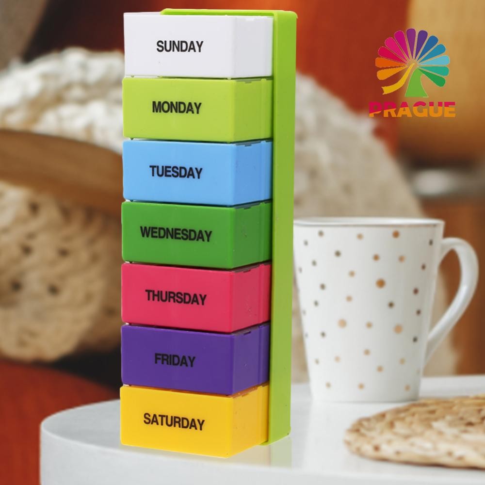 _ 28 Slots Pill Organizer พลาสติกที่มีสีสัน Mints Splitters Case แบบพกพาทุกวัน U [prague.th]