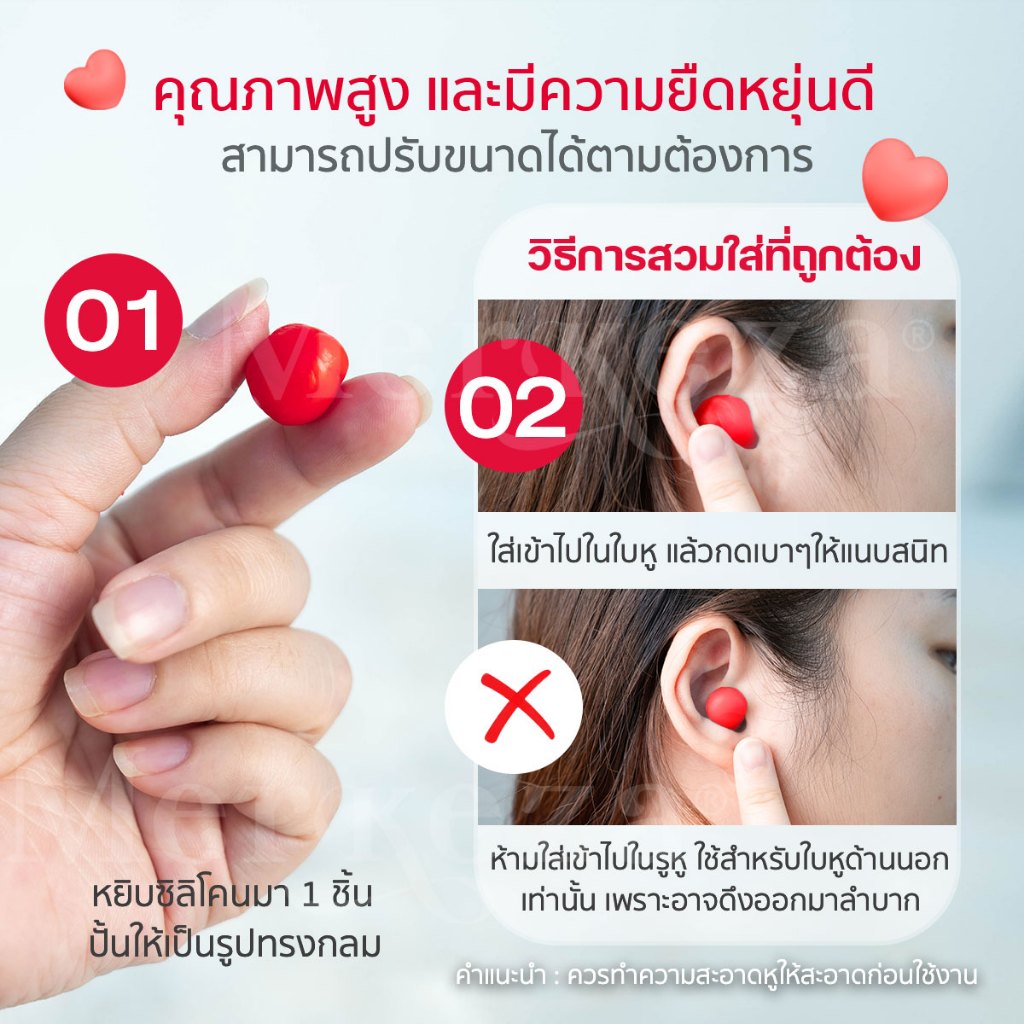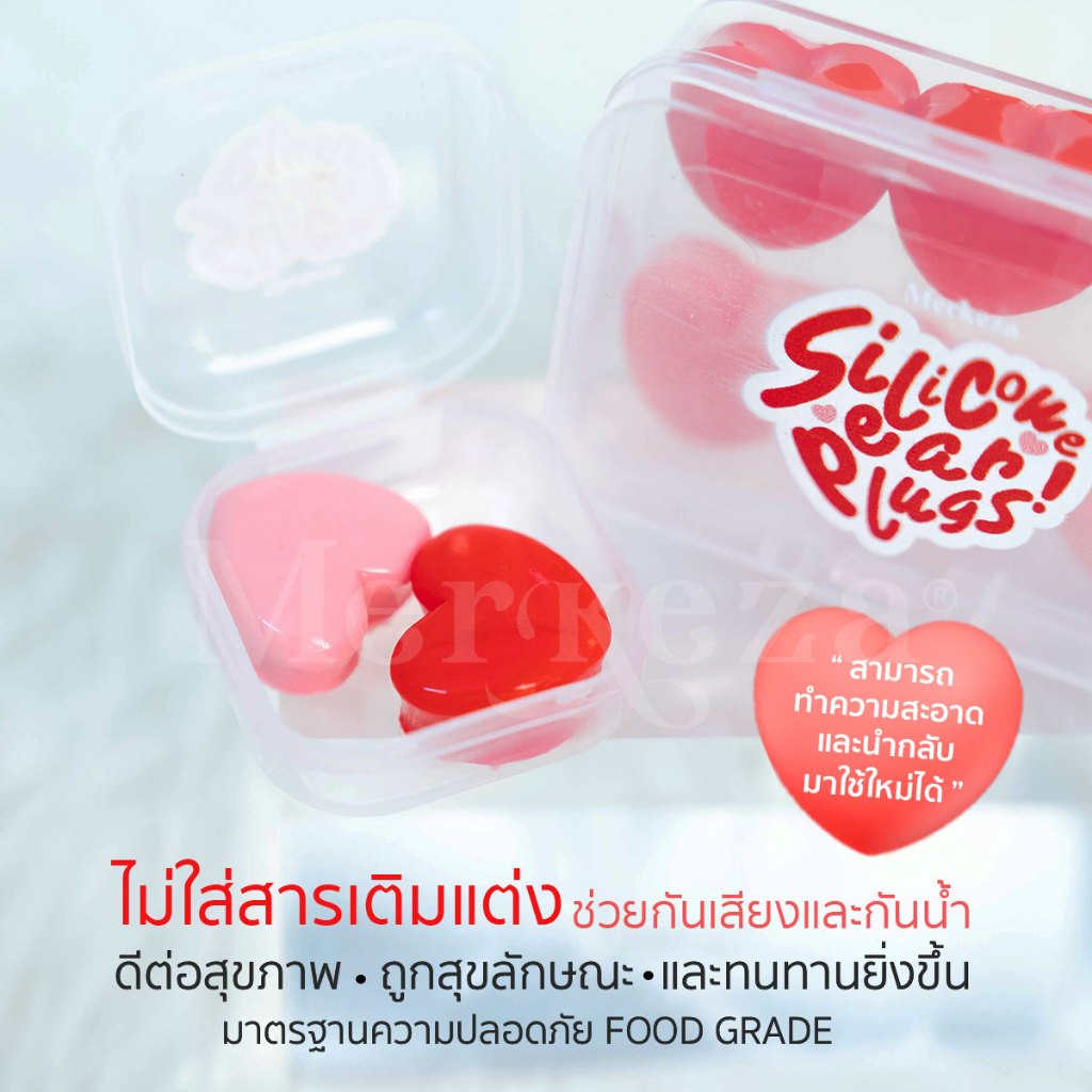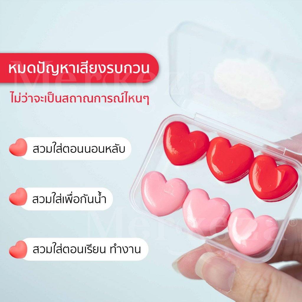 [เซต3 คู่] Merkeza Silicone Earplug ซิลิโคน อุดหู หัวใจ กันเสียง กันน้ำ ลดเสียงรบกวน ใส่นอน นอนกรน ใช้ซ้ำได้