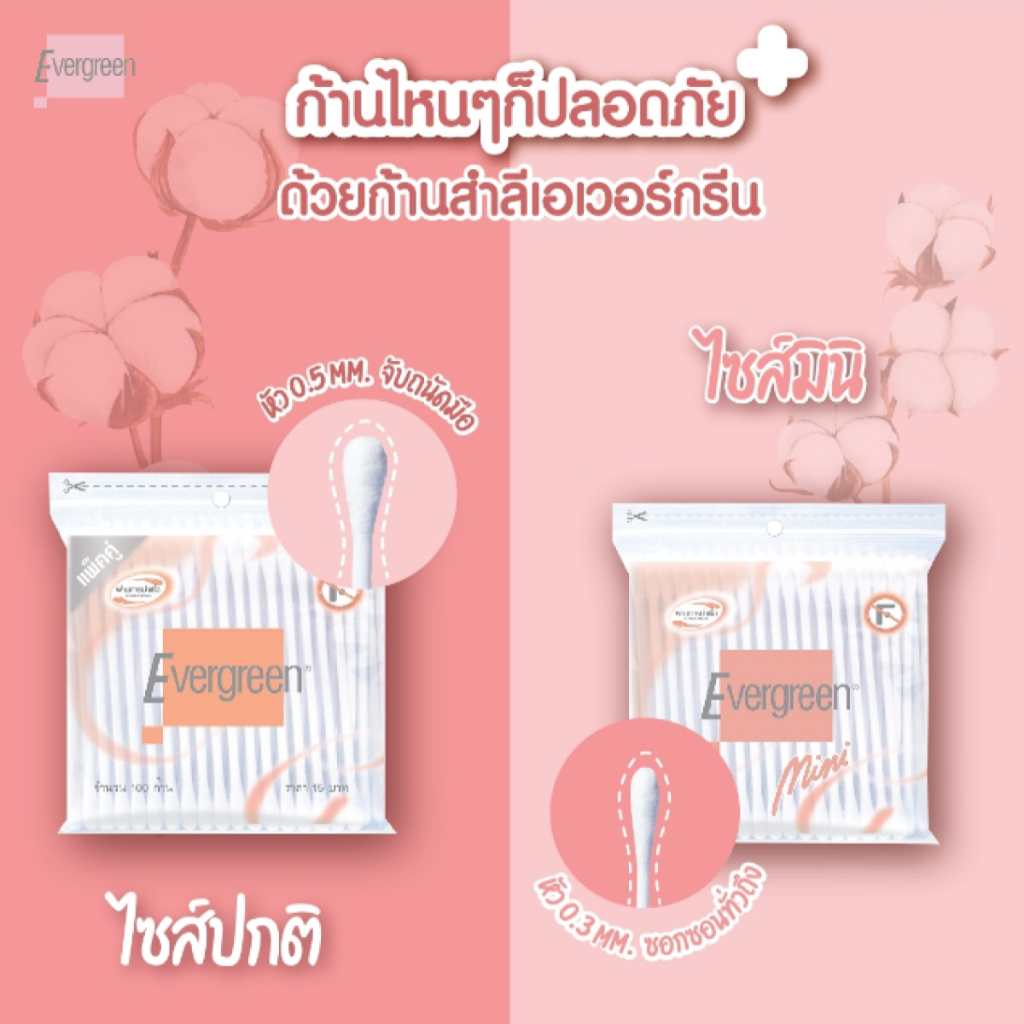 (ชุด 4 ) เอเวอร์กรีน สำลีก้าน 100 ก้านถุง ขนาดปกติ – ชุด 4 ชิ้น / Evergreen Cotton Bud 100 pcs. (4 unit)