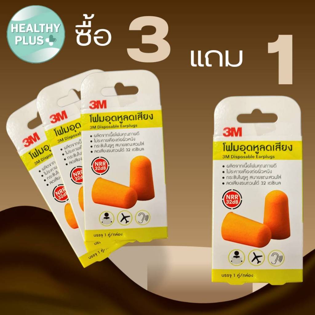 ^ซื้อ 3 กล่อง แถม 1 กล่อง 3M disposable earplugs 1 คู่ ที่อุดหู โฟมอุดหู โฟมอุดหูลดเสียง