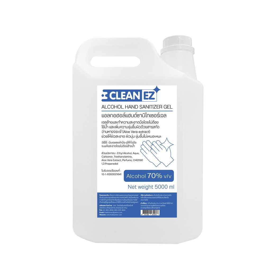 Clean EZ แอลกอฮอล์ เจลล้างมือ 5000 มล. แอลกอฮอล์ 70% Alcohol Hand Sanitizer Gel 5000 ml 5 ลิตร