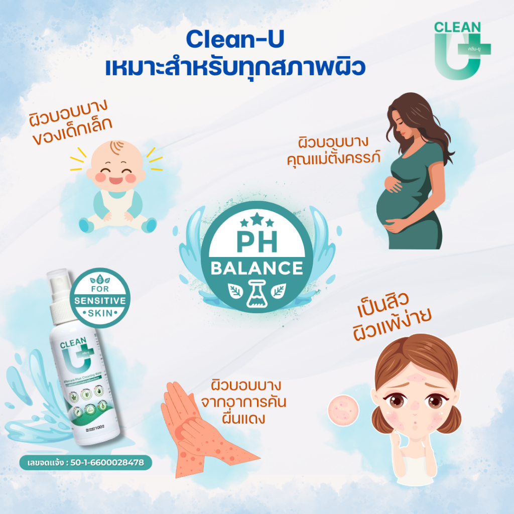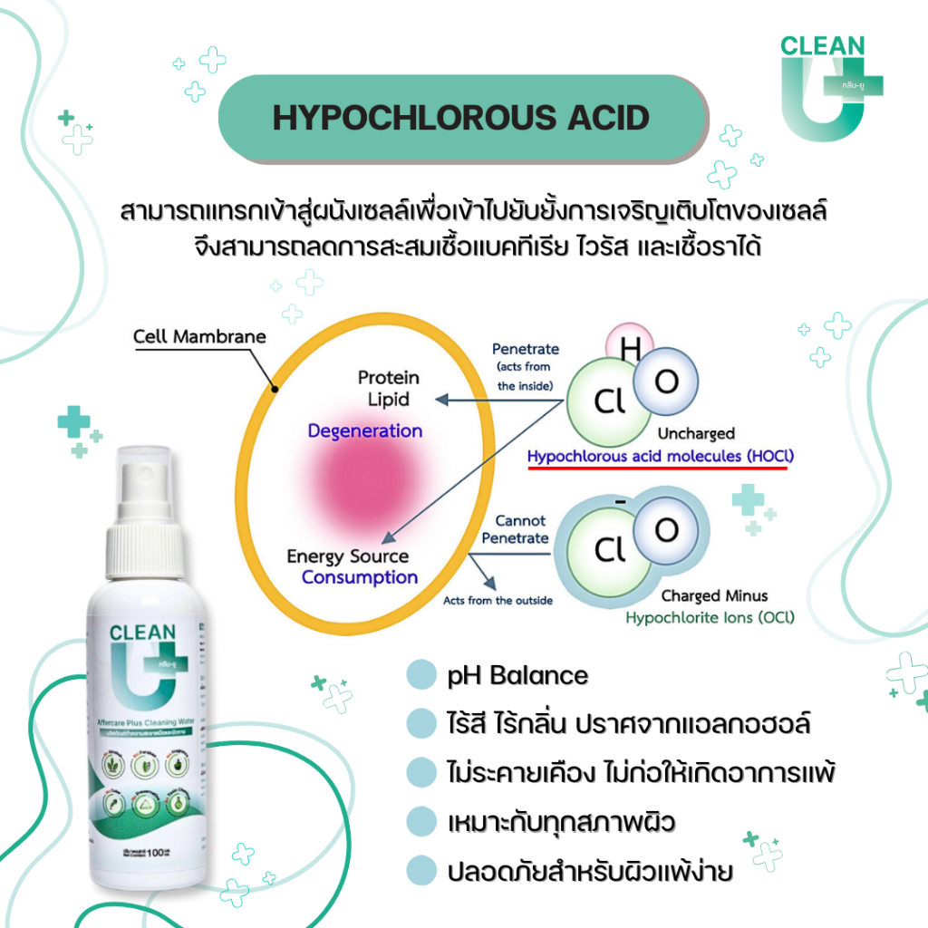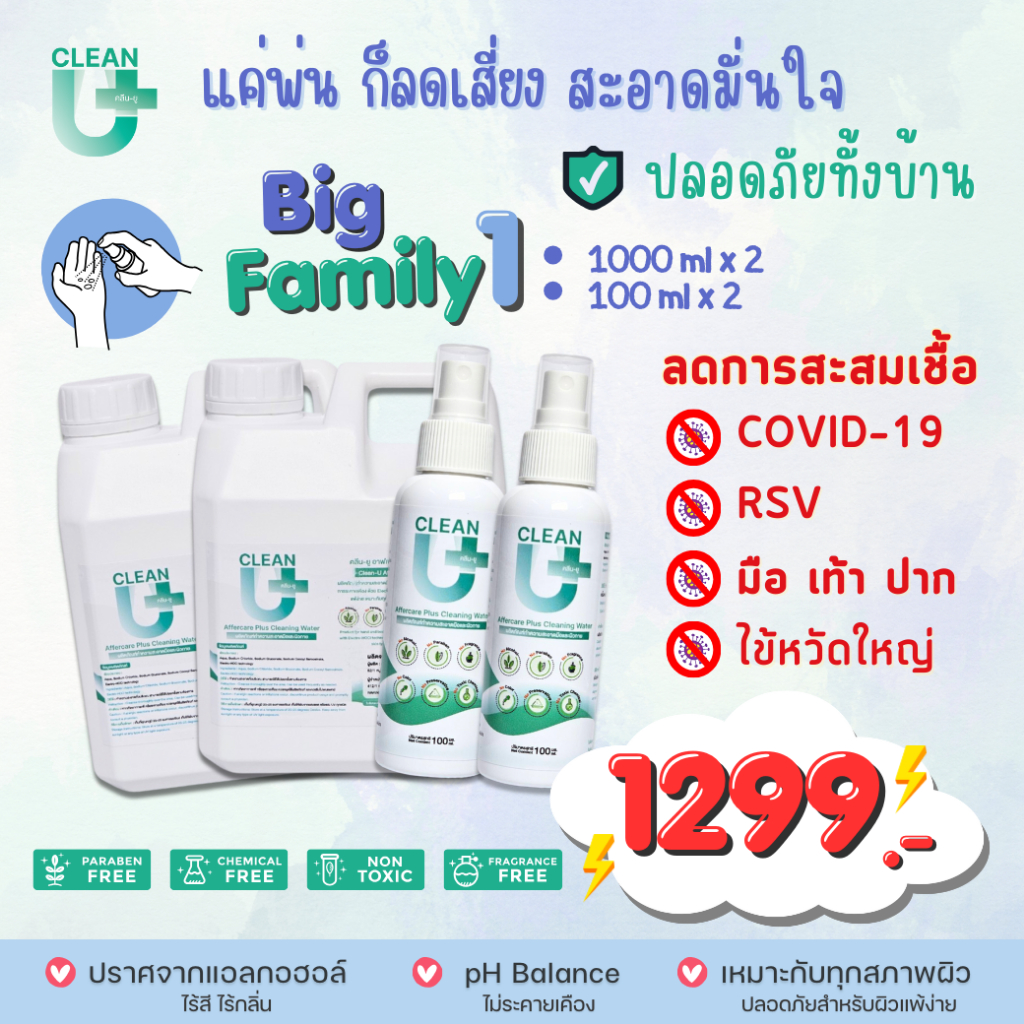 Big Family1 Clean-U Affercare Plus Cleaning water Hypochlorous Acid ลดการสะสมแบคทีเรีย ผิวหน้าผิวกาย