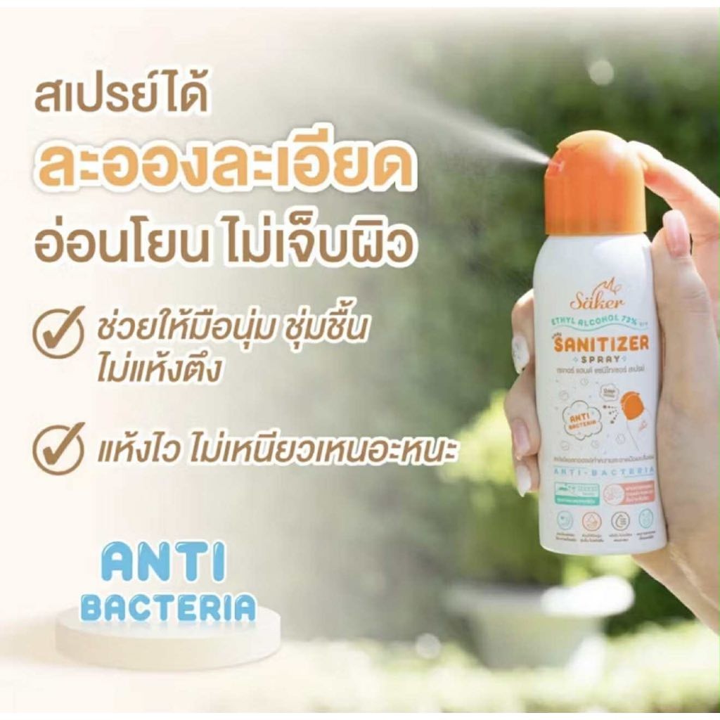 Saker ขนาดพกพา สเปรย์แอลกอฮอล์พืชธรรมชาติ ฟู้ดเกรดทำความสะอาดมือ สิ่งของเกรดสัมผัสอาหารได้