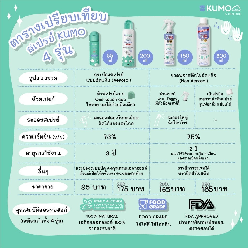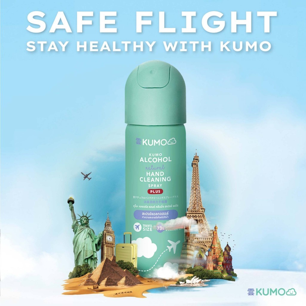 KUMO สเปรย์แอลกอฮอล์ 73% ฟู้ดเกรด ขนาดพกพา 55 มล. (แบบอัดแก๊ส) ผลิตจากแอลกอฮอล์ธรรมชาติ มาตรฐานญี่ปุ่น-55 มล.