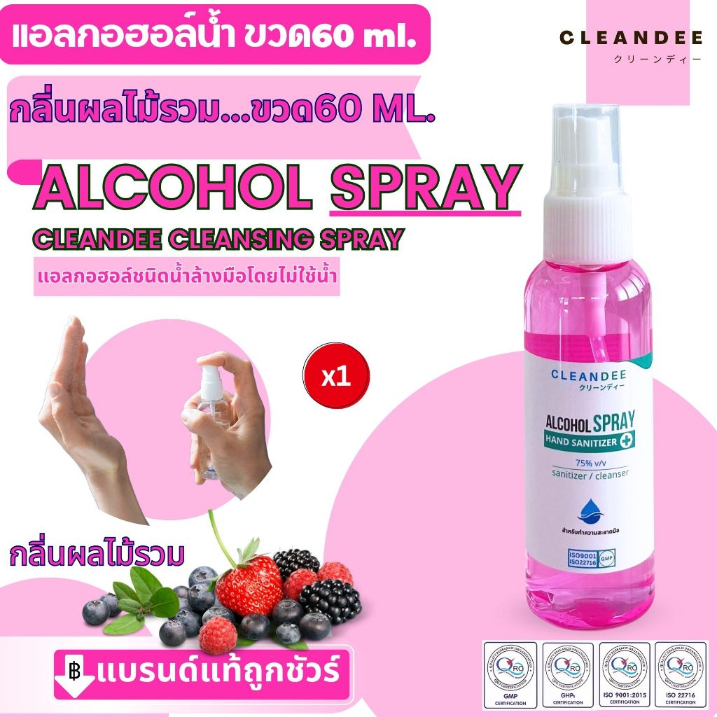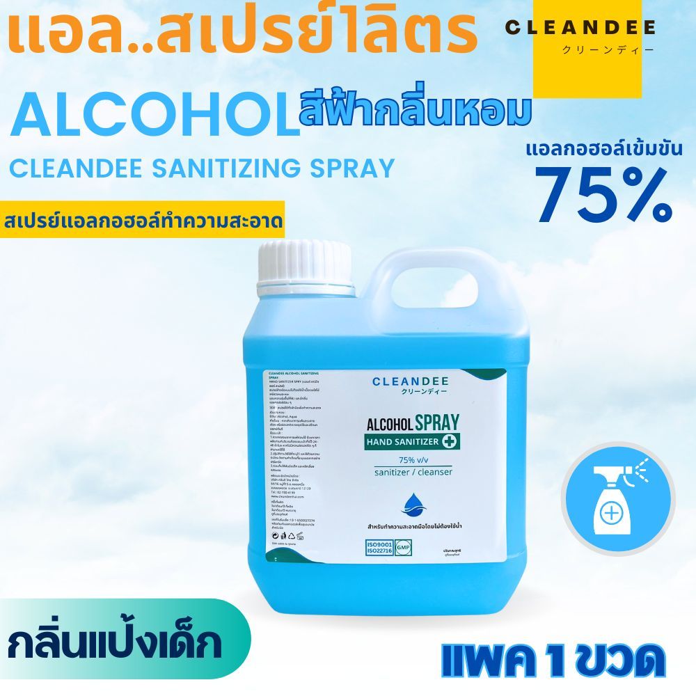 คลีนดี(แอลน้ำ)สเปรย์แอลกอฮอล์ขนาดแกลลอน1ลิตรกลิ่นแป้งเด็กสีฟ้า 1แกลลอน