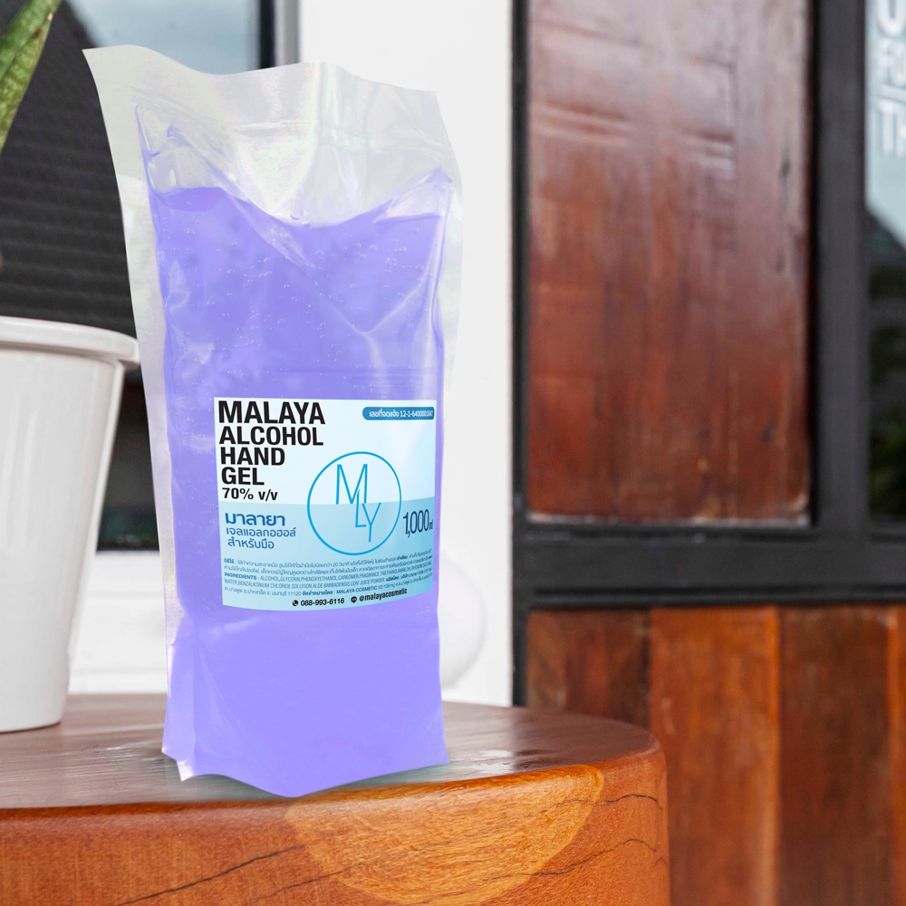 เจลแอลกอฮอล์ เจลล้างมือ กลิ่น มิดไนท์ แอลกอฮอล์ 70% midnight Malaya alcohol hand gel 1000ml แบบเติม ถุง 1 ลิตร