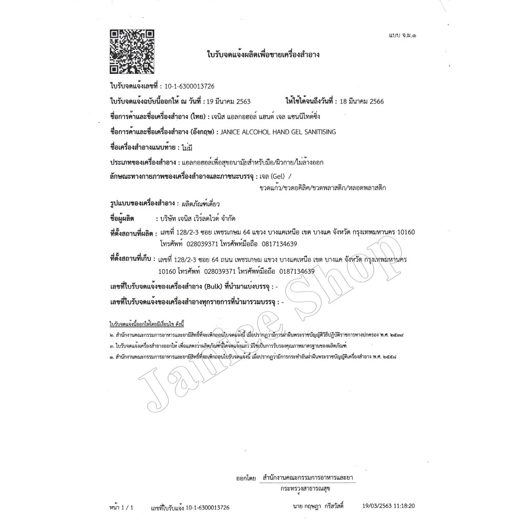 เจลล้างมือแบบพกพาขนาด 50 ml. แอลกอฮอล 75% กลิ่นมิ้นหอมสดชื่นไม่เหนียว