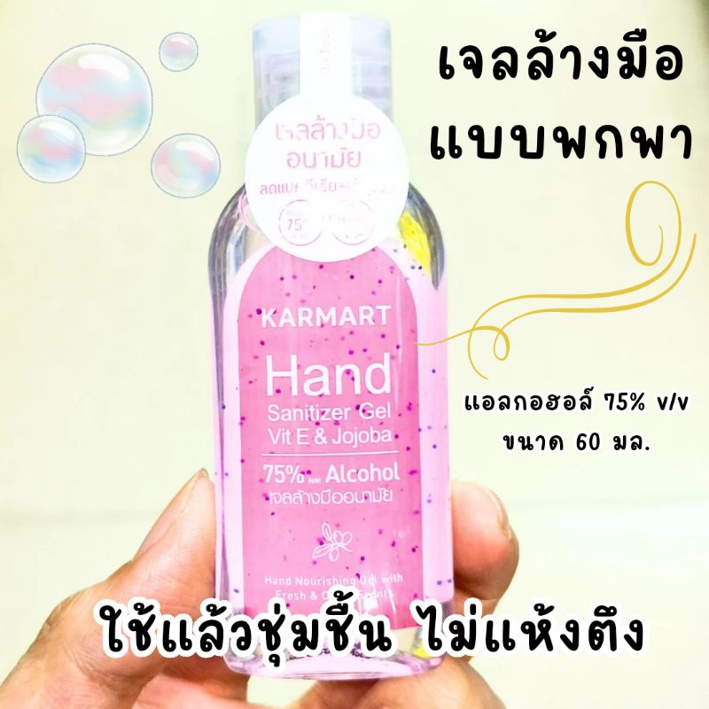 เจลล้างมือ แอลกอฮอล์ คาร์มาร์ท ขนาดพกพา 60 มล. ขวดชมพู Karmart Hand Sanitizer Gel Vit E & Jojoba