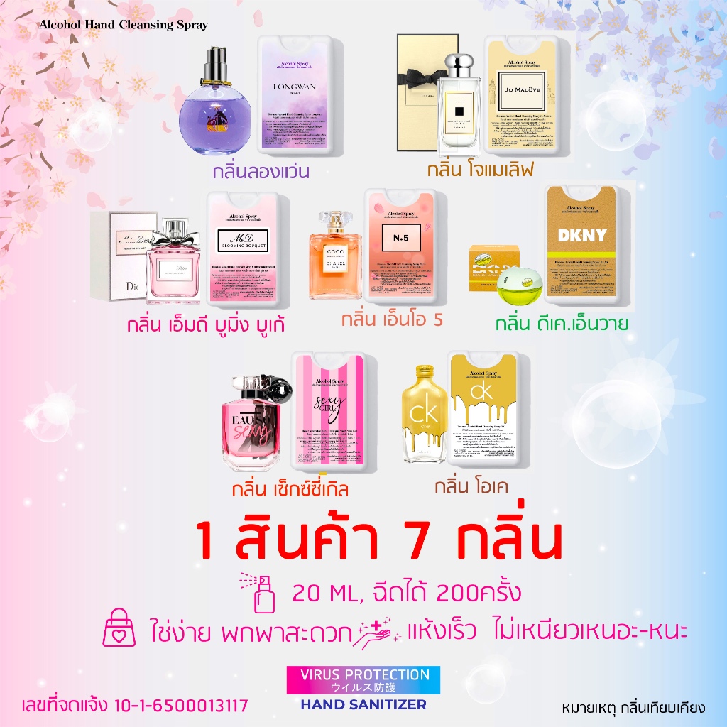 สเปรย์แอลกอฮอล์ พกพา (1สินค้า/7ชิ้น) กลิ่นน้ำหอม สเปรย์การ์ด พกพา spray alcohol กลิ่นหอม 20ml พร้อมส่ง ส่งด่วน