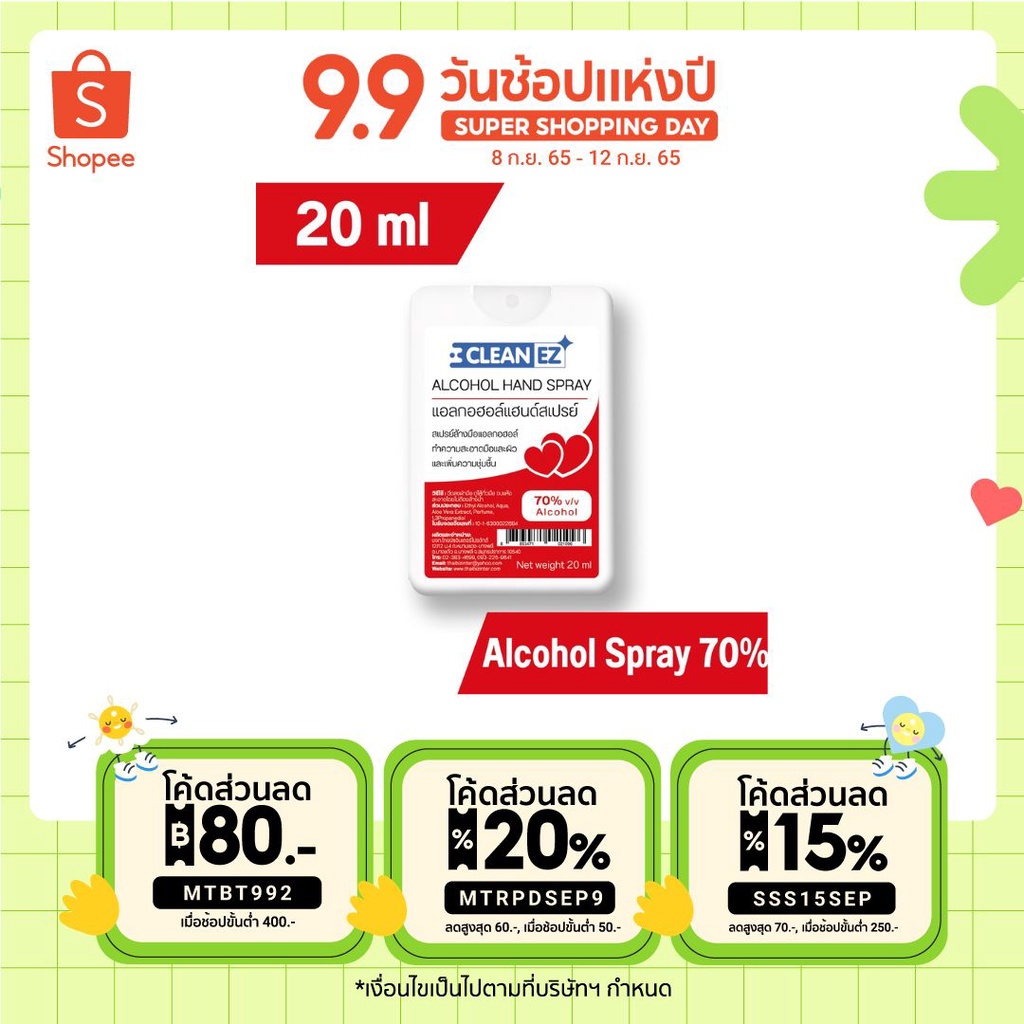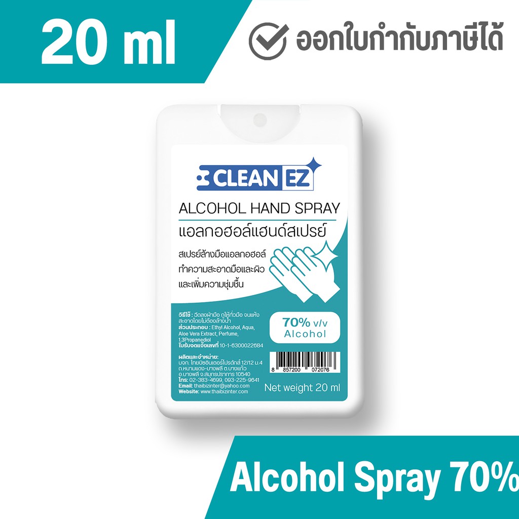 ใส่โค้ดMTBT992Clean EZ แอลกอฮอล์สเปรย์การ์ด 20 มล. แอลกอฮอล์ 70% Alcohol Hand Spray Card 20 ml พกพาง่าย