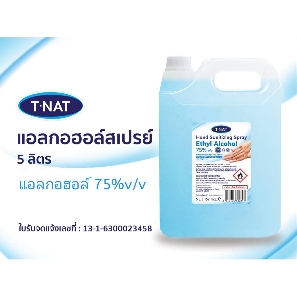 แอลกอฮอล์สเปรย์ึ75%กลิ่นหอม ฟู้ดเกรดFood grade T-NAT ขนาด 5 ลิตร