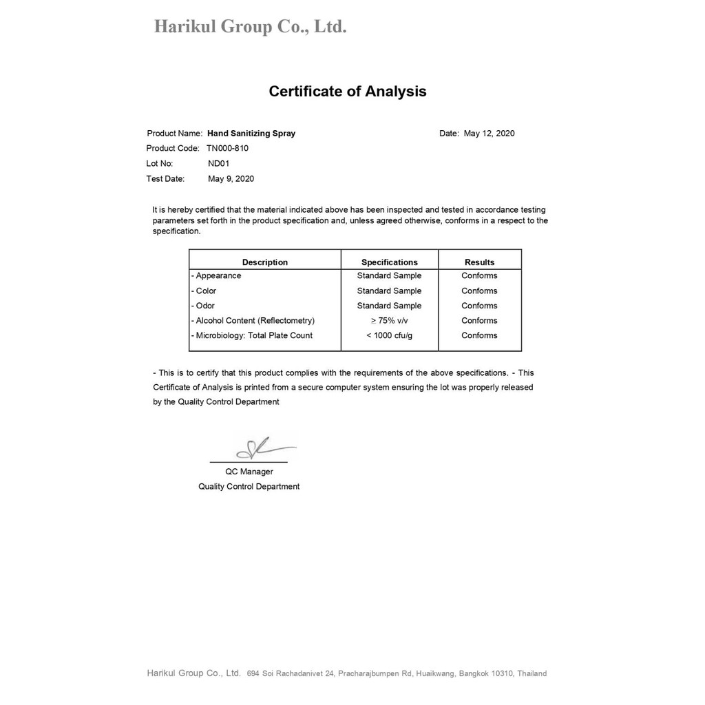 แอลกอฮอล์ไม่ปรุงแต่งกลิ่นล้างมือแบบสเปย์ ALCOHOL HAND SPRAY 75% ขนาด1แกลลอน/1000ml
