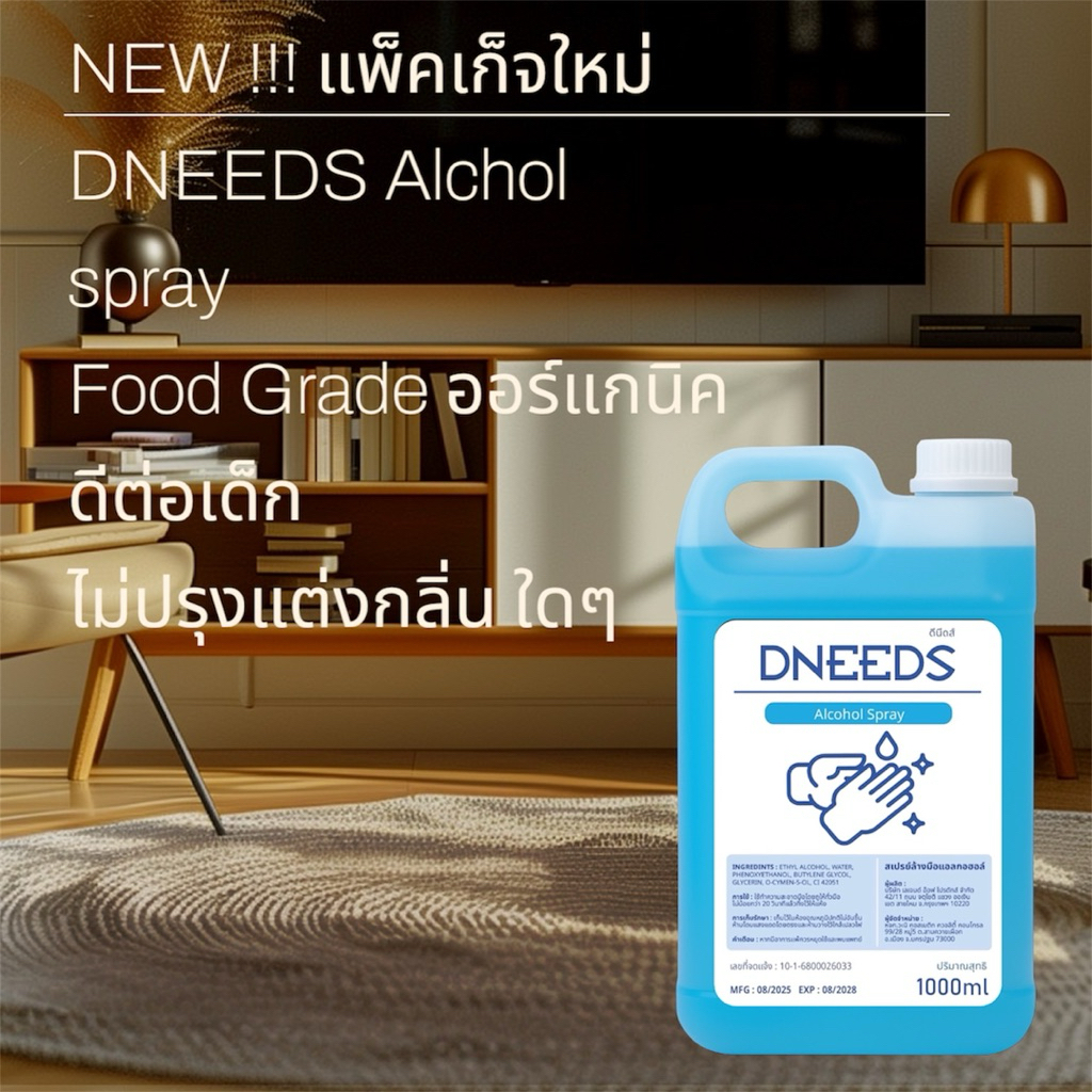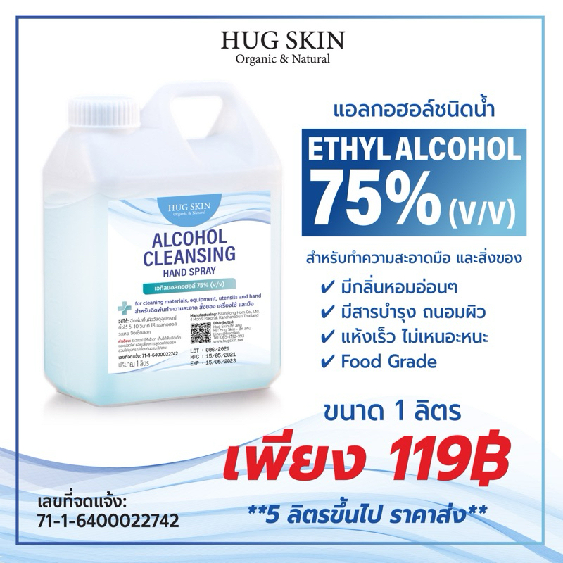 แอลกอฮอล์ชนิดน้ำ 75% สูตรไม่มีกลิ่น Food Grade ไม่ขม ขนาด 1 ลิตร