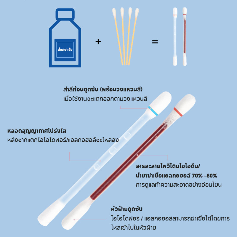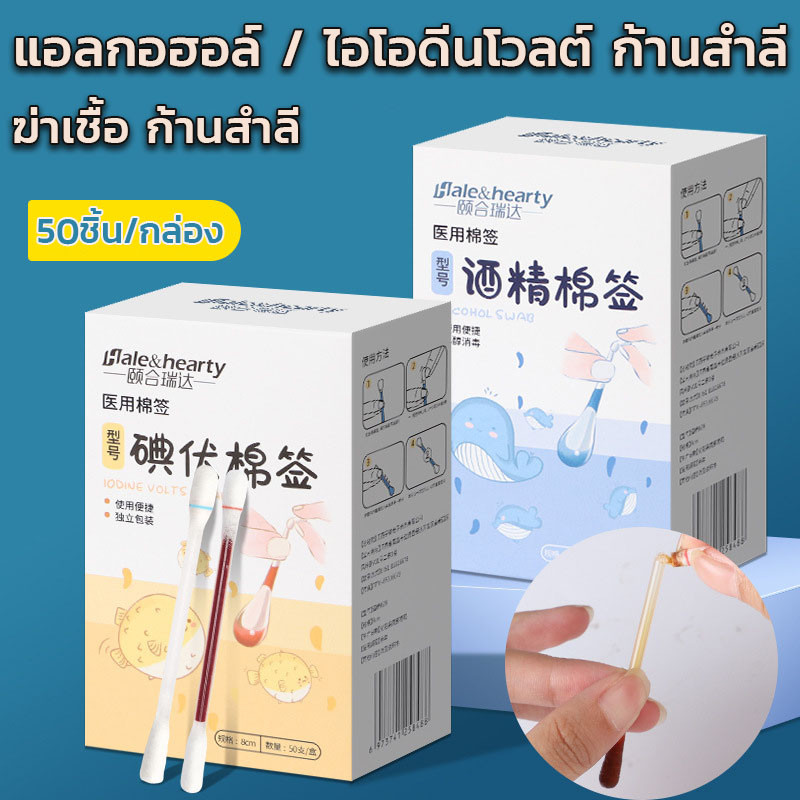 ?ก้านสำลีเบตาดีน 50ชิ้น/กล่อง น้ำยาฆ่าเชื้อเบตาดีน เช็ดแผล ใช้แล้วทิ้ง ผ้าฝ้ายพร่องมันเนย + แอลกอฮอล์ + ไอโอดีนโวลต์