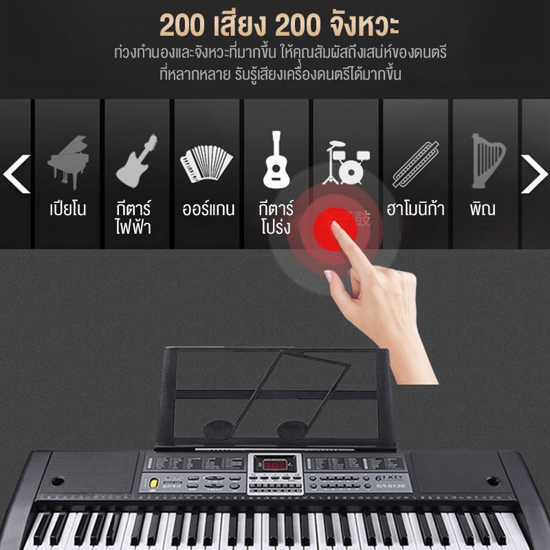 Bansid Music เปียโนอิเล็กทรอนิกส์มัลติฟังก์ชั่น 61 คีย์สำหรับผู้เริ่มต้นและเด็ก เลือกการกำหนดค่าได้หลายแบบ อัจฉริยะ