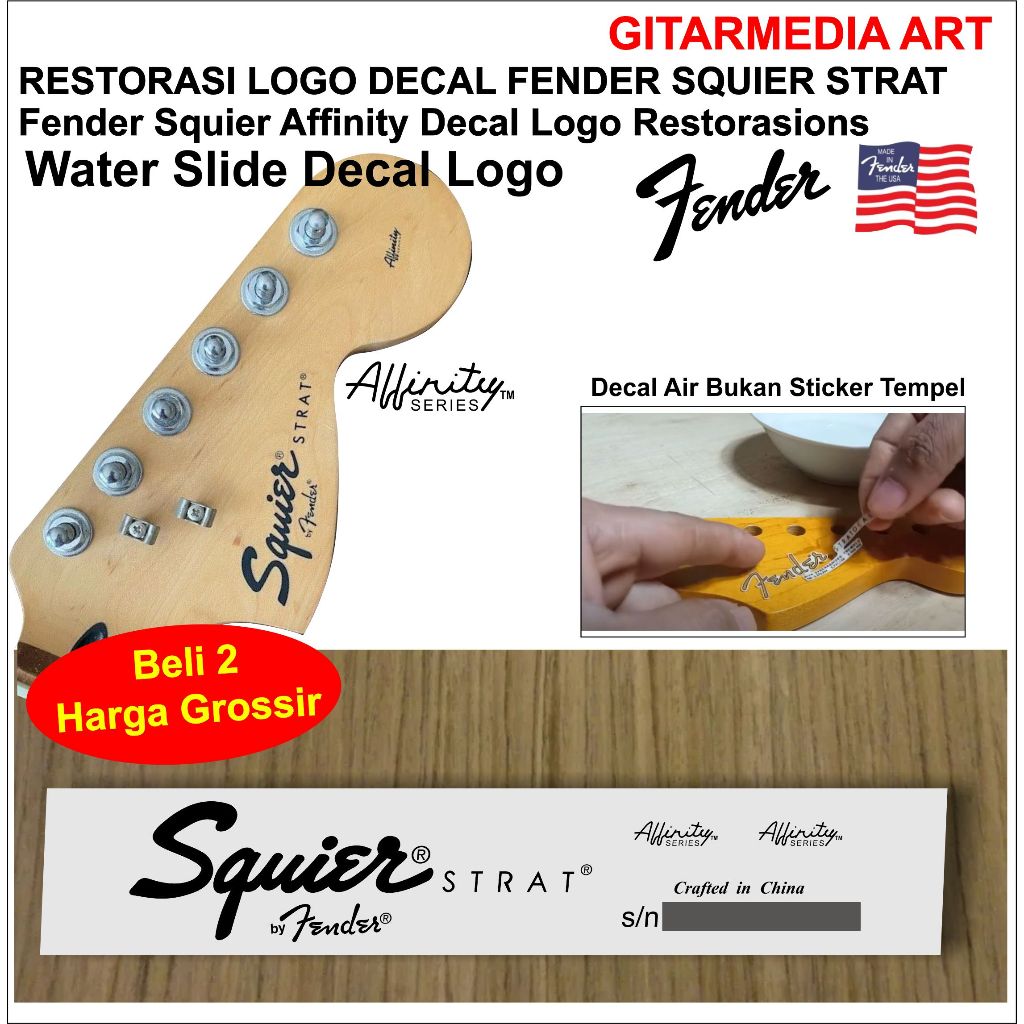 Fender squier stratocaster affinity series fender logo decal, affinity squier logo
