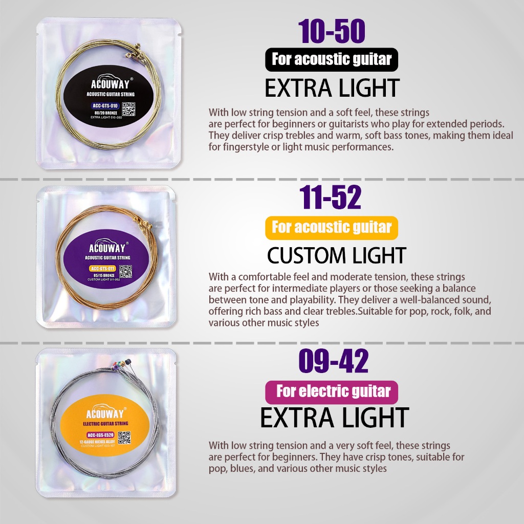 ACOUWAY สายกีตาร์โปร่ง สายกีตาร์ไฟฟ้า Guitar string 80/20ทองเหลืองแสงพิเศษสายกีตาร์โทนสดใสยัง85/15ทองเหลืองที่กําหนดเองแสงกีต้าร์สาย