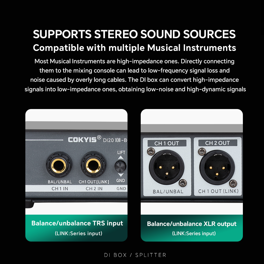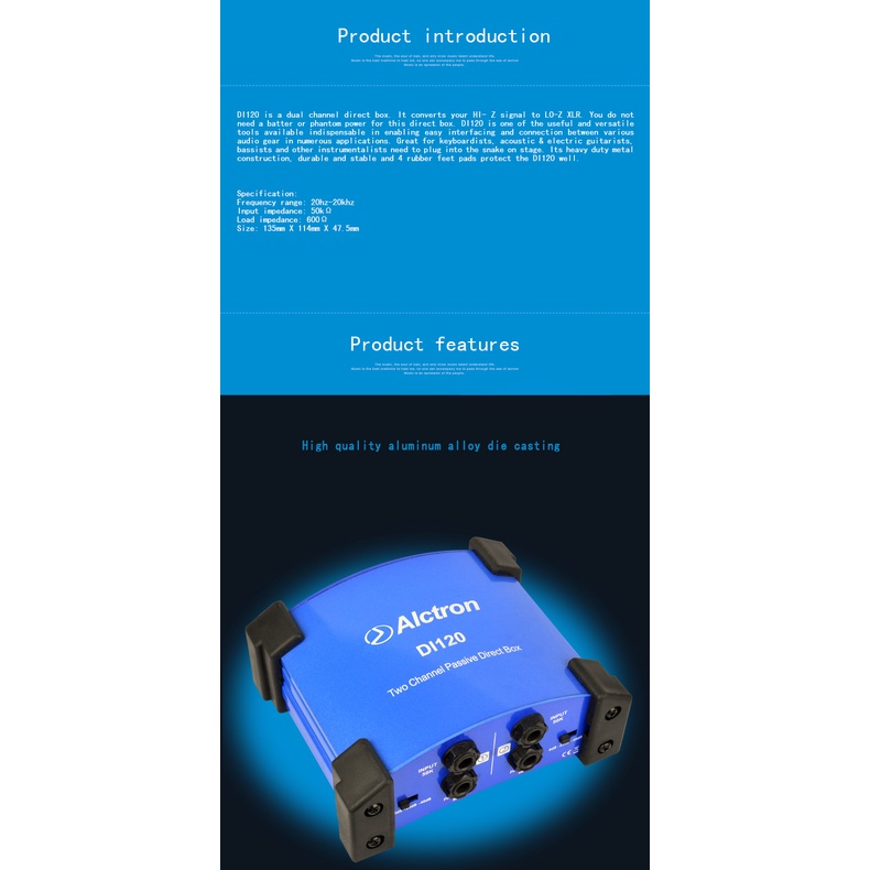 Aldron DI-120 DI Direct Box มาใหม่พาสซีฟสเตอริโอสองทางพาสซีฟ DI กล่องอิมพีแดนซ์ DI BOX Stage Effector