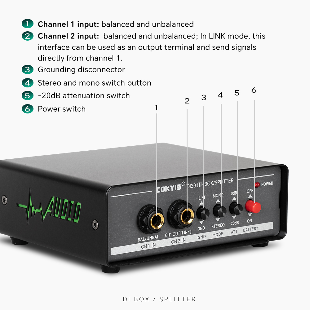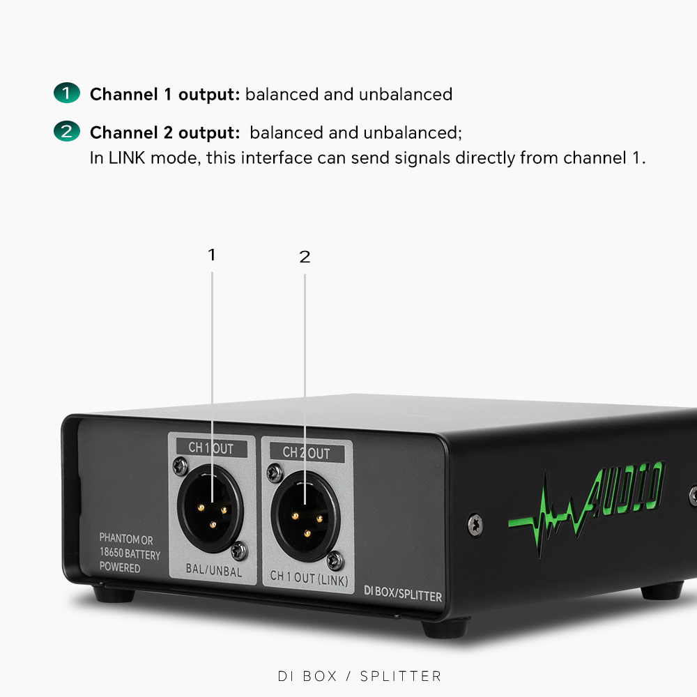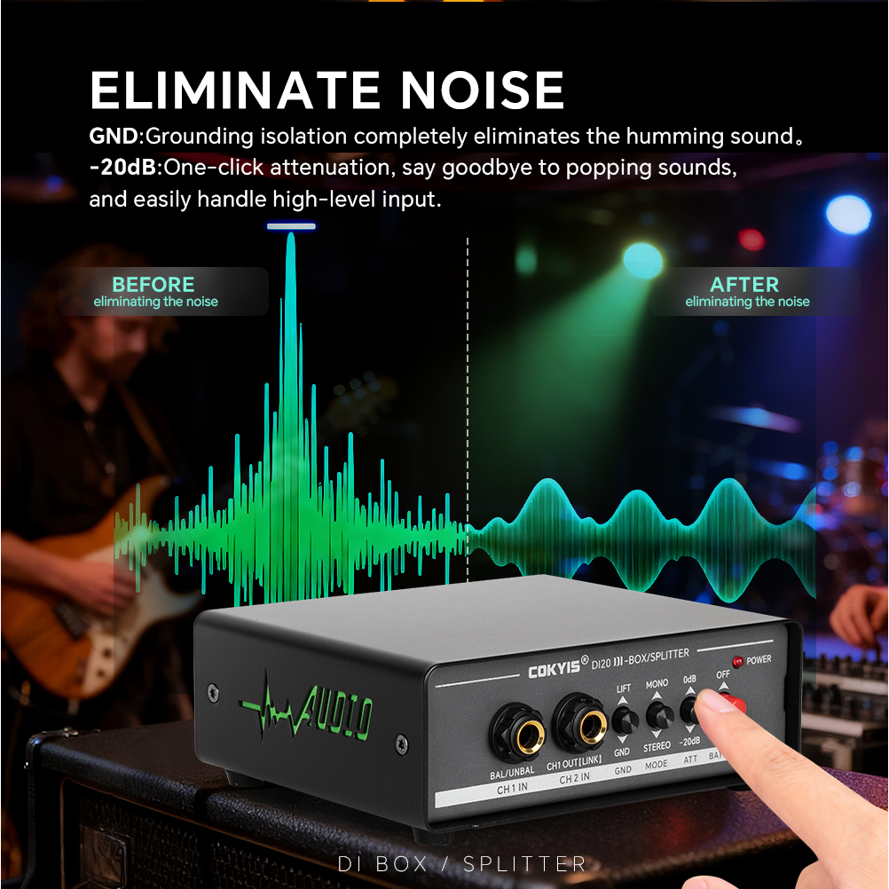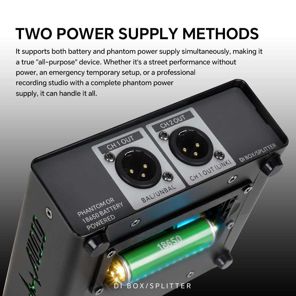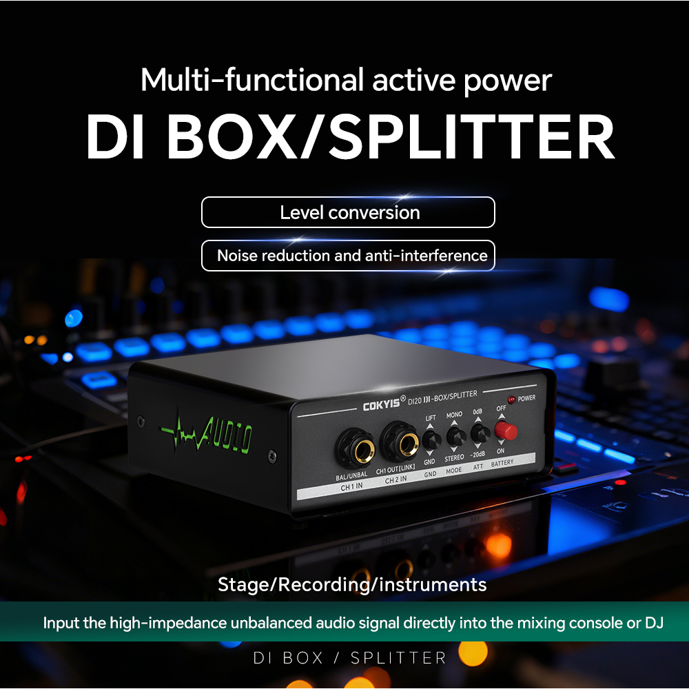 Active DI Box 2-Channel, Low Noise DI Box/SPLITTER สําหรับ Stage Guitar Recording Mixer