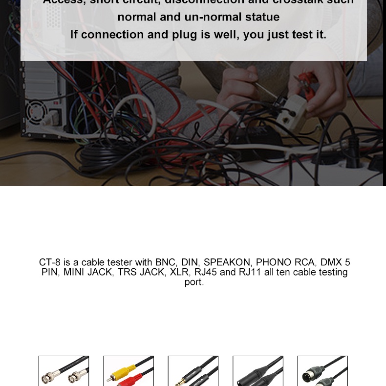 Alctron CT-8 เครื่องทดสอบสายสัญญาณเสียง อเนกประสงค์ แบบมืออาชีพ เครื่องทดสอบสายแยกวิศวกรรม