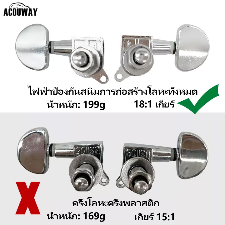 ACOUWAY ลูกบิดกีต้าร์โปร่ง กีตาร์ไฟฟ้า แบบ2ทาง ครบชุด 6 ชิ้น แถมฟรี!น๊อต แหวนรองพร้อมติดตั้ง machine heads guitar Guitar String Tuning Pegs