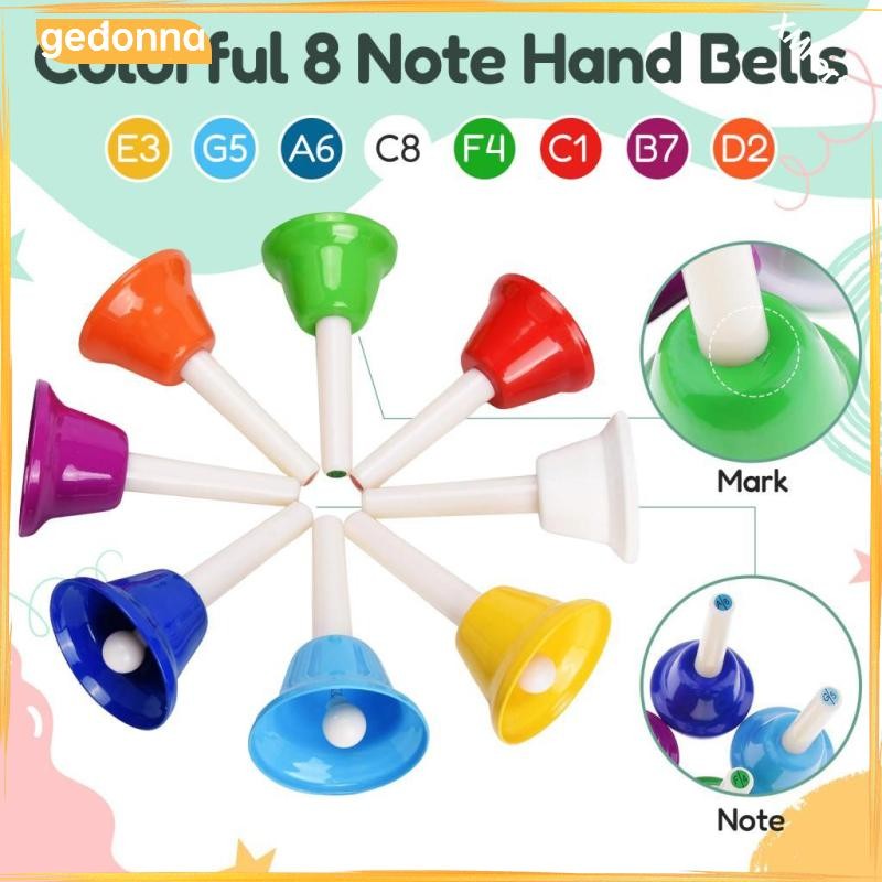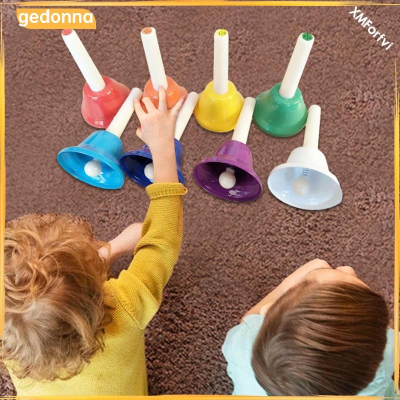 [gedonna] 8x Handbell Set, Handbells สีสันสดใส, เครื่องดนตรี, กระดิ่งดนตรีสําหรับวันหยุด
