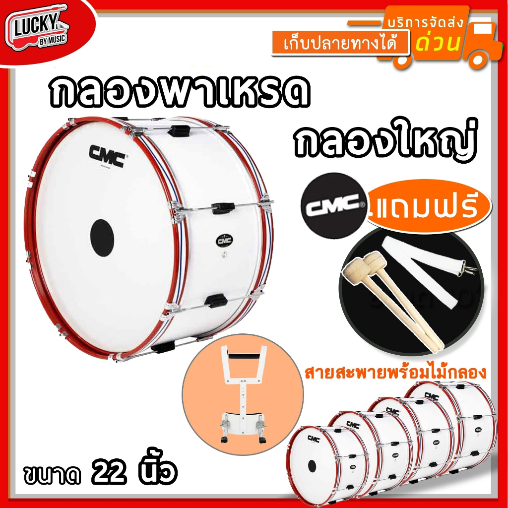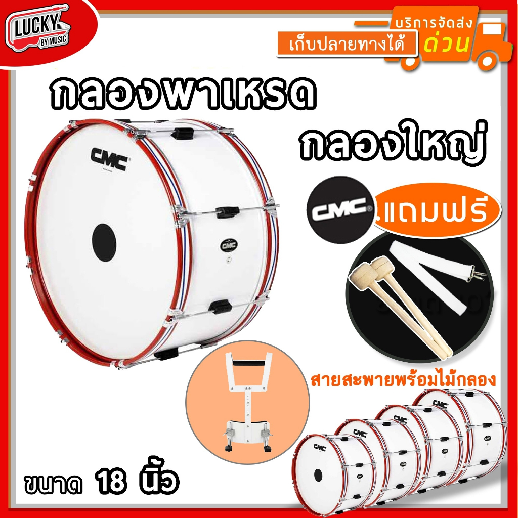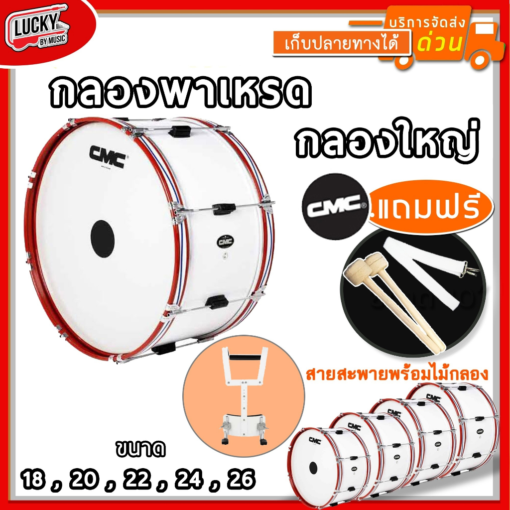 [พร้อมสายสะพายผ้า✅] กลองใหญ่เดินแถว CMC 18-26 นิ้ว 8 หลัก ขอบเหล็ก เลือกขนาด/ขาแขวนเพิ่มได้ – ฟรี สายสะพายผ้า/ไม้กลอง