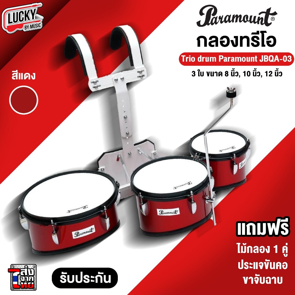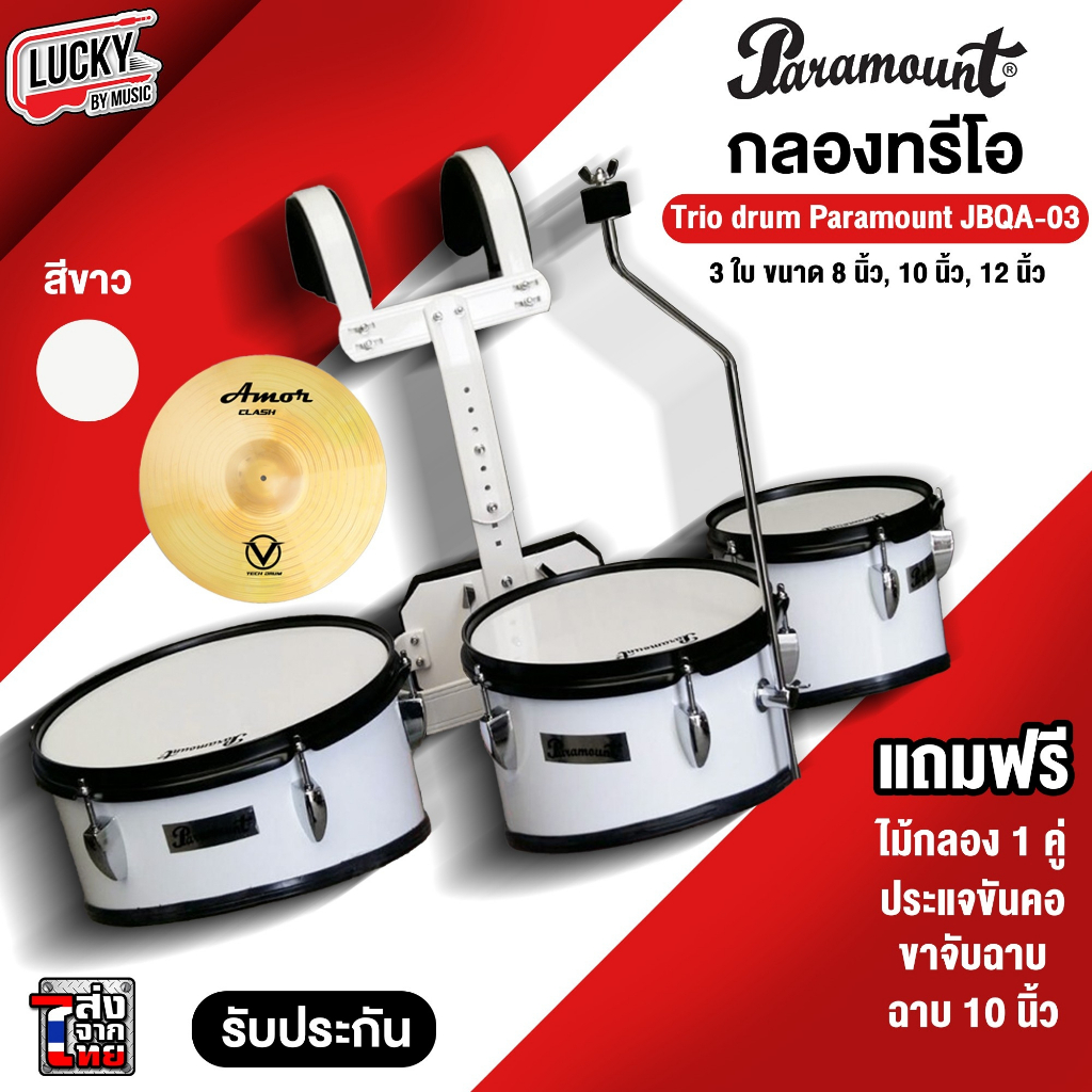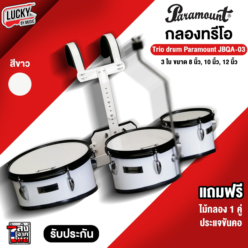 [โค้ดลด1000-฿?] กลองทรีโอ Paramount รุ่น jbqa-03 สีขาว 8-10-12 นิ้ว + เซตสุดคุ้ม พร้อมชุดสายสะพาย ไม้กลอง ประแจกลอง