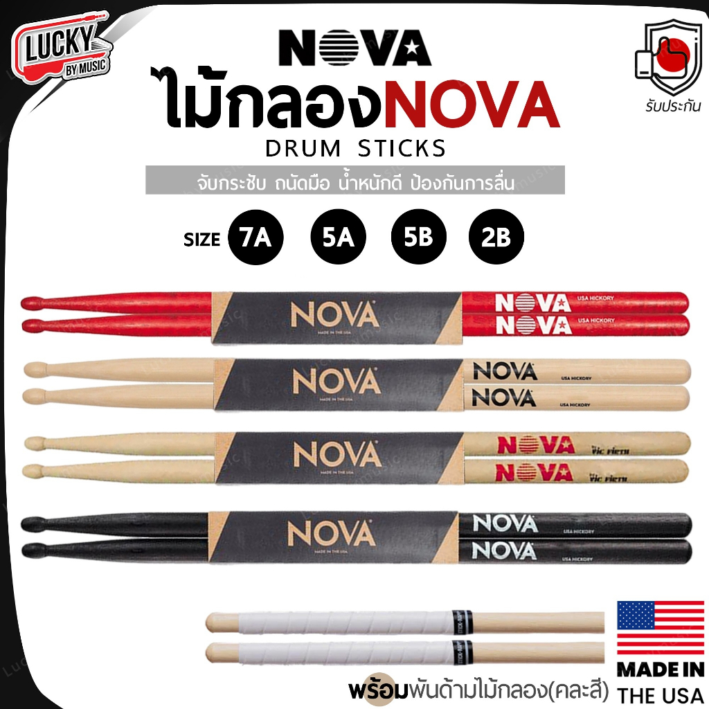[โค้ดส่วนลด?] ไม้กลอง Nova (USA.) พร้อมพันด้ามไม้กลอง (คละสี) จับกระชับ ถนัดมือ ไม่ลื่น – ของแท้ 100%