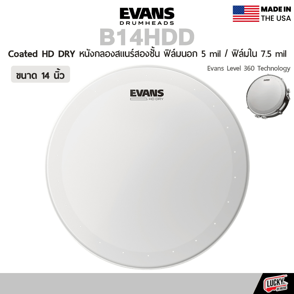 [โค้ดลด100-?] Evans หนังกลองสแนร์ B14HDD HD DRY 14″ แบบขุ่นน้ำมัน 2 ชั้น หนังสแนร์ หนังบน วงแหวนหนา 2 มิล – ของแท้ USA