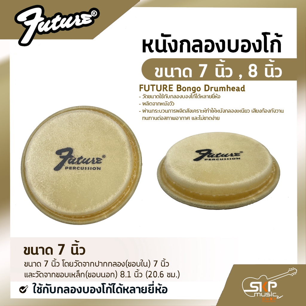หนังกลองบองโก้ ขนาด 7 นิ้ว , 8 นิ้ว FUTURE Bongo Drumhead ใช้กับกลองบองโก้ได้หลายยี่ห้อ