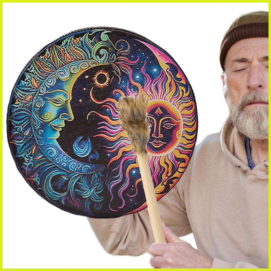 พื้นเมืองอเมริกันกลอง Handmade PU หนัง Shaman มือกลอง Big Tone Vintage รอบ Shaman เสียงเครื่องมือ Gavel decfeyeth