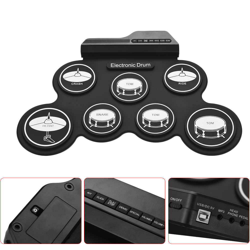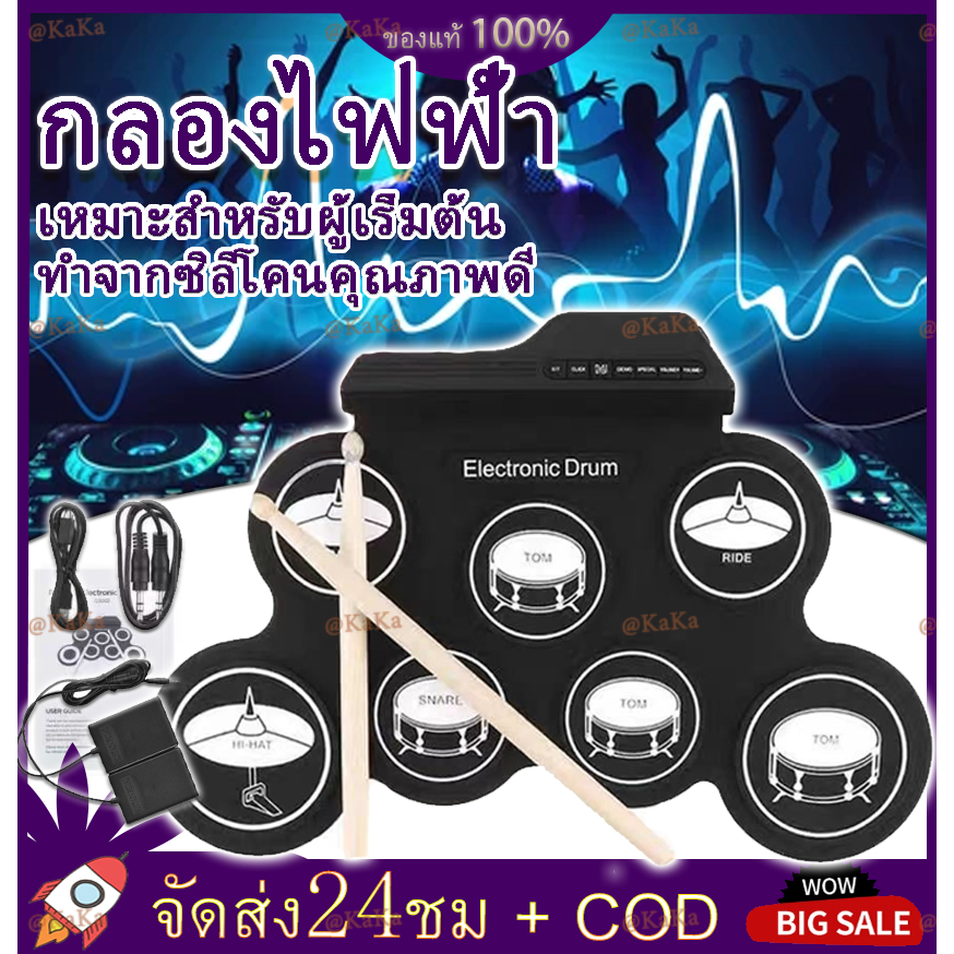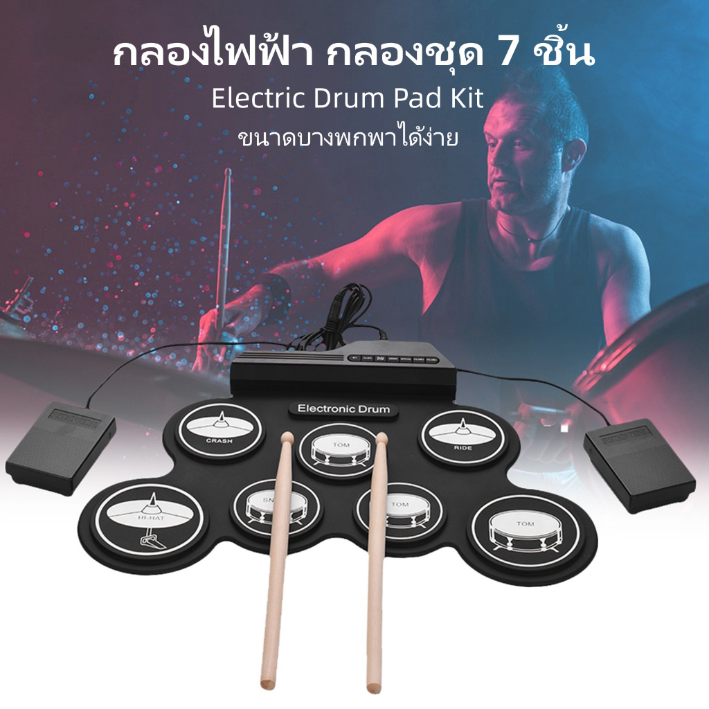 ✨พร้อมส่ง✨กลองชุด กลองไฟฟ้า กลองชุด 7 ชิ้น Electric Drum Pad Kit Digital Drum ทำจากซิลิโคนคุณภาพดี ขนาดบางพกพาได้ง่าย