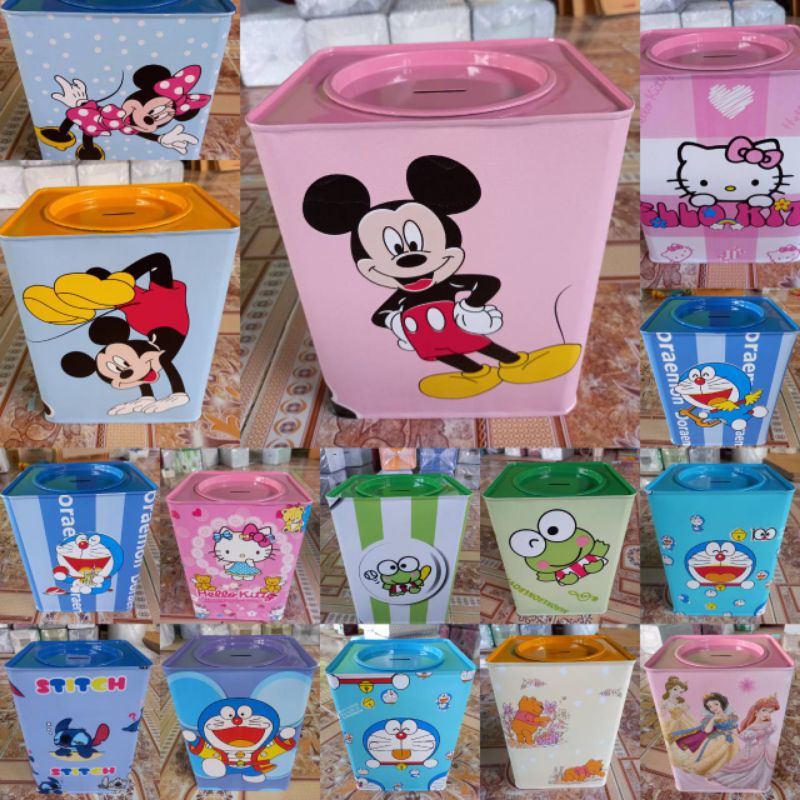 ✓[108] ปี้บกระปุกออมสิน มี3ไซต์ S M L ลายการ์ตูน มีหลายลายให้เลือก (แบบเปิดได้)