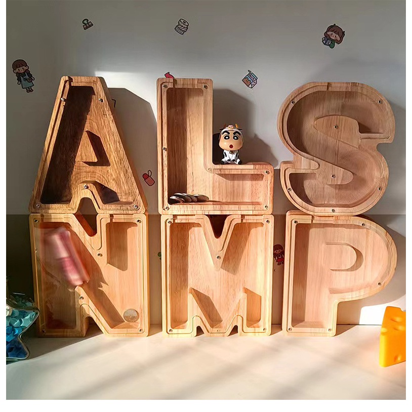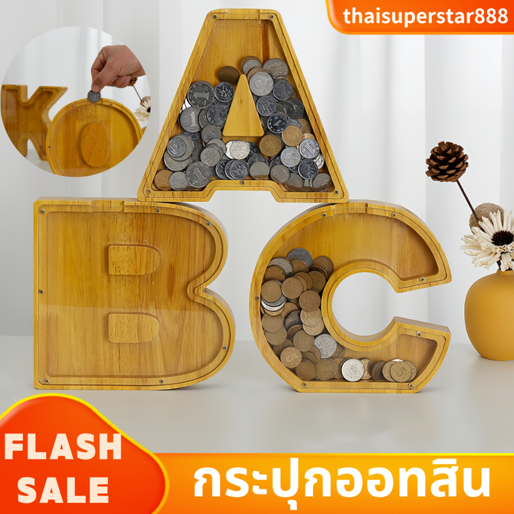 ?COD?กระปุกออมสินไม้ ที่เก็บเหรีญน รูปตัวอักษรภาษาอังกฤษ สําหรับตกแต่งบ้าน