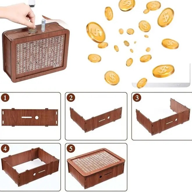 【ปากกาฟรี+ปกอะครีลิค】กระปุกออมสินไม้มีตัวเลขบนกล่อง กระปุกออมสิน กระปุกออมสิน กระปุกออมสิน