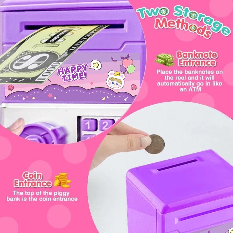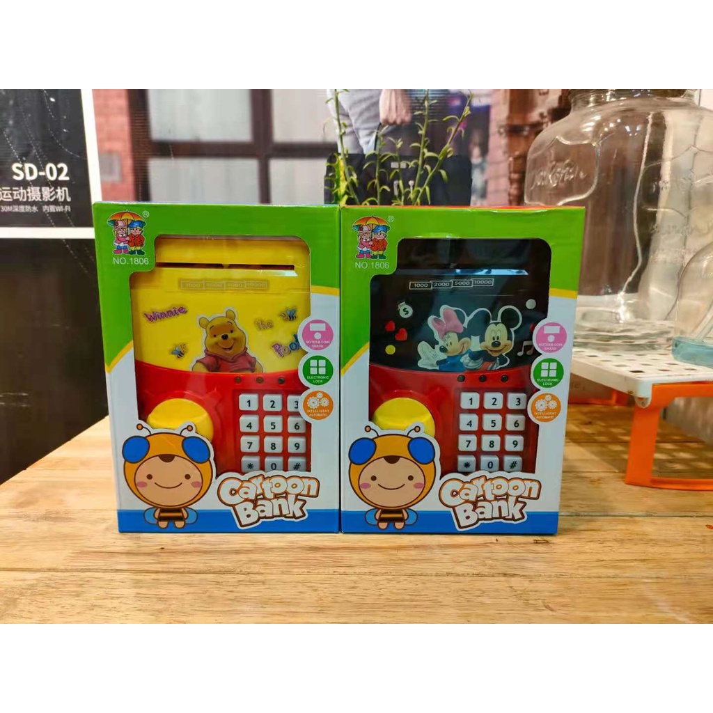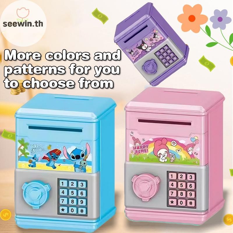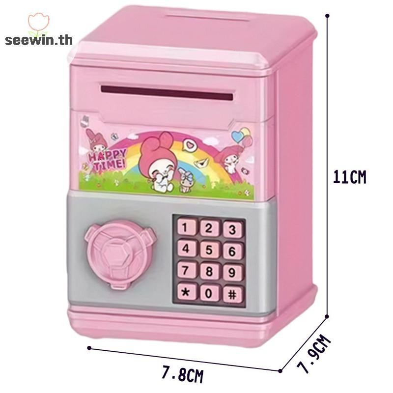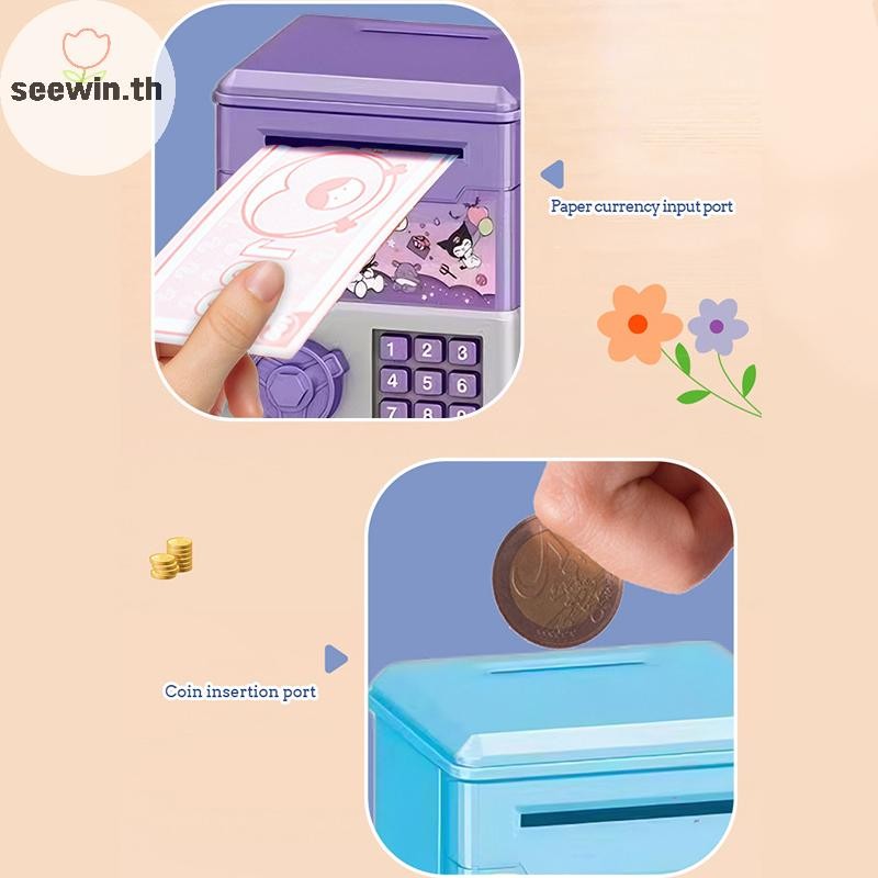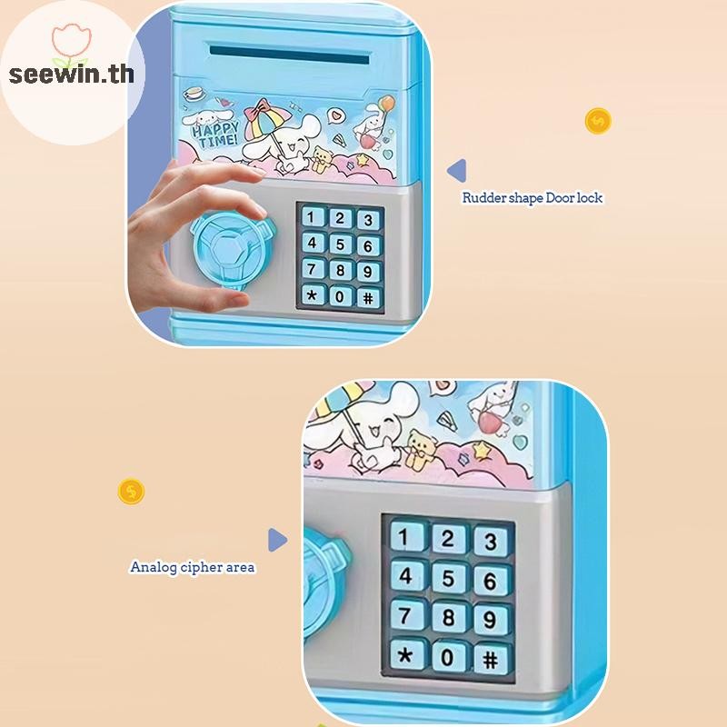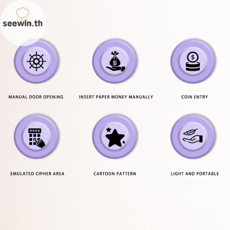 Seewin อัตโนมัติ Mini ปลอดภัยเหรียญเงินสดประหยัดกล่องเงินรหัสผ่านเคาน์เตอร์รหัส Key Lock เหรียญ Bank ATM เด็ก th