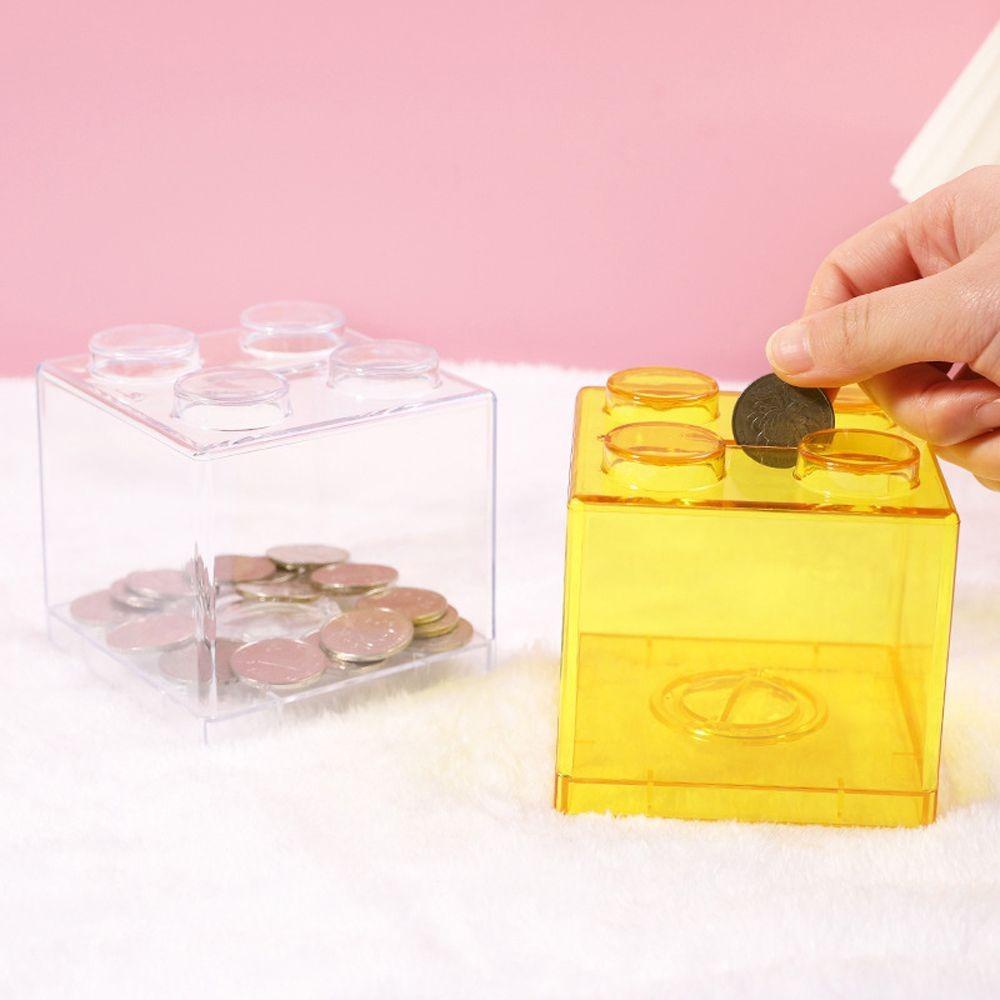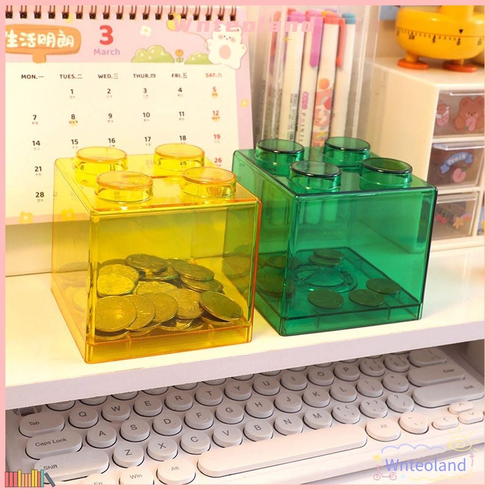 WNTEOLAND Building Block กล่องเหรียญเปลี่ยนกล่องเด็กผู้หญิงเงินสดโปร่งใสสีสันเด็กเหรียญ Bank
