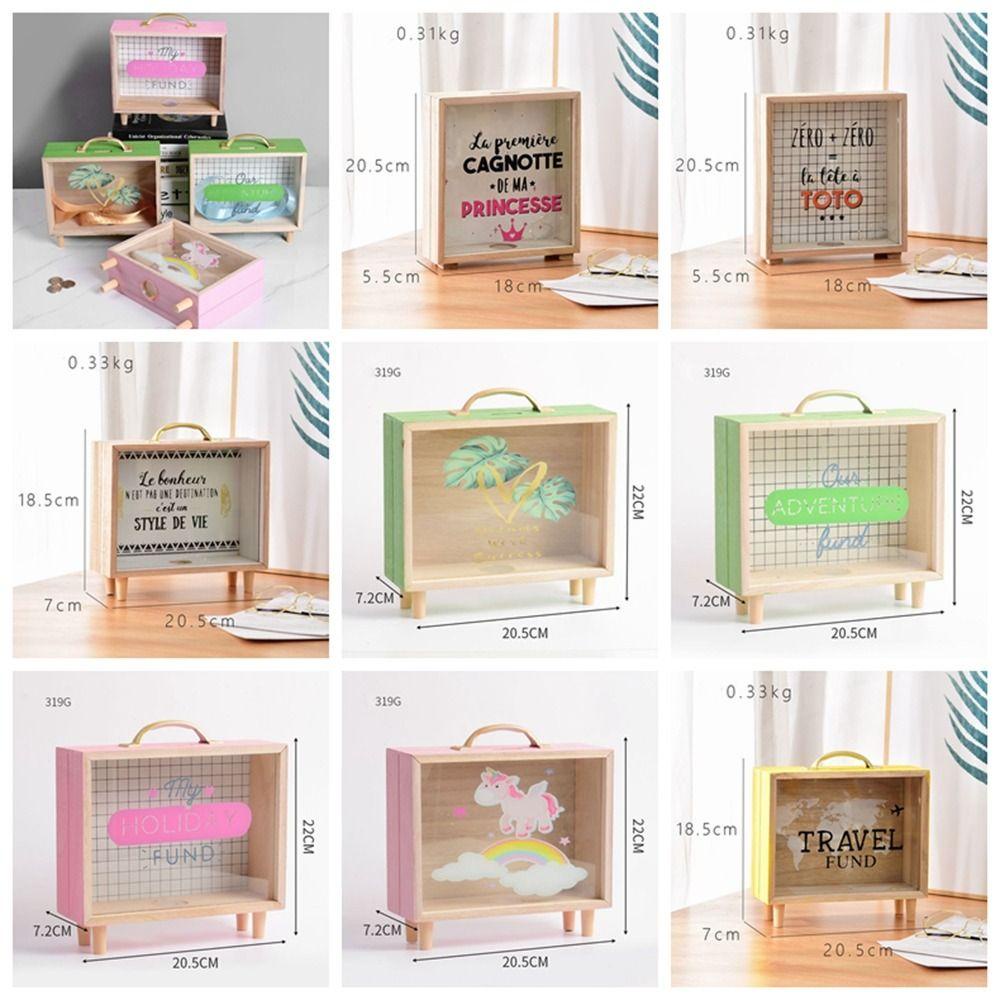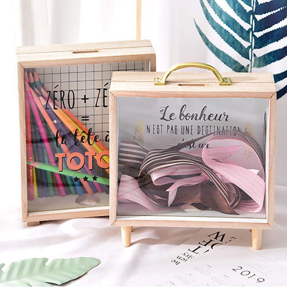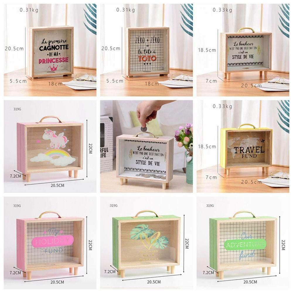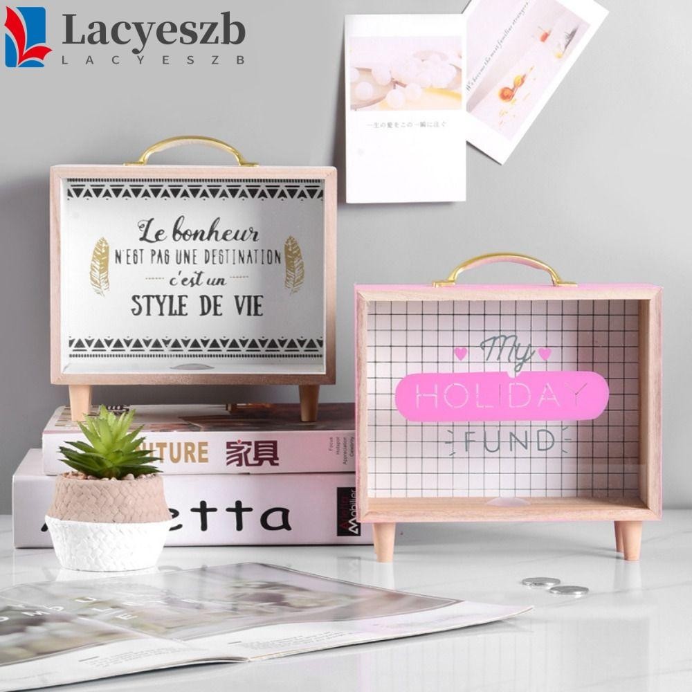 Lacyeszb ถังออมสินไม้ ทรงสี่เหลี่ยม สไตล์นอร์ดิก พร็อพถ่ายรูป สําหรับเด็ก