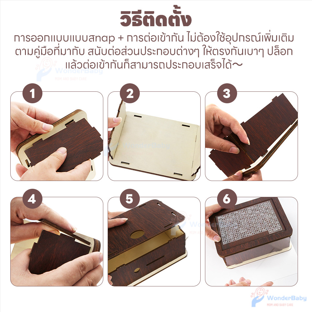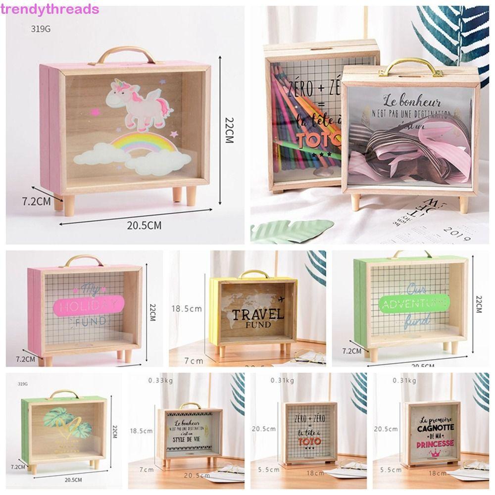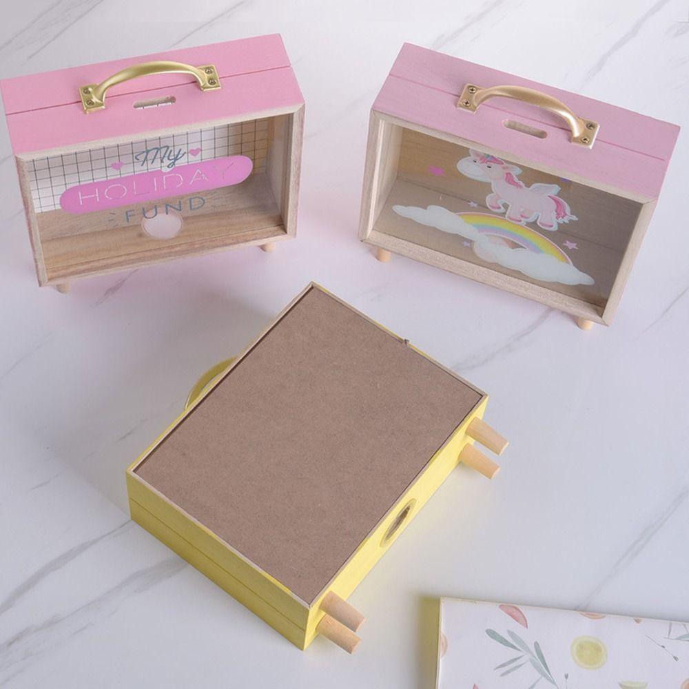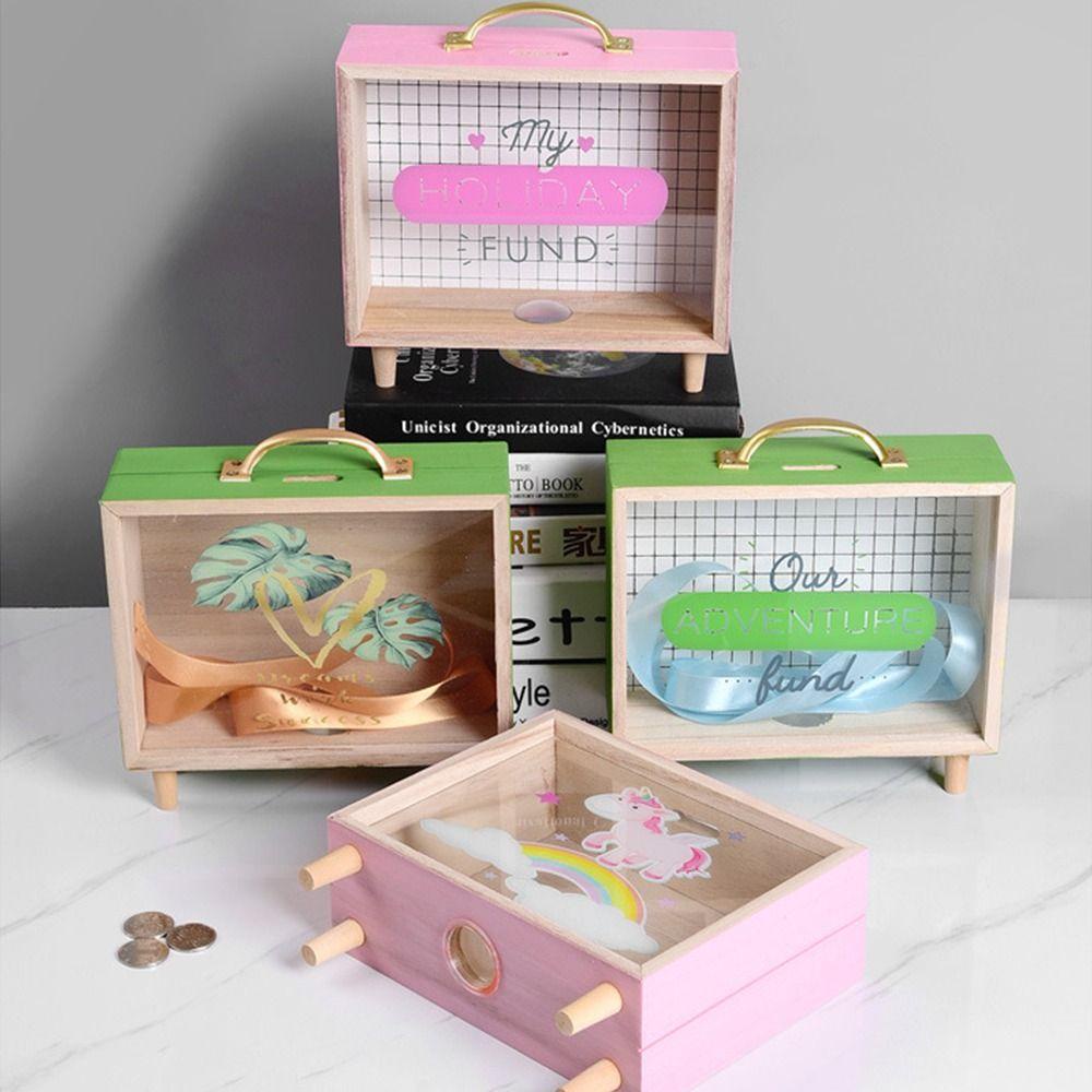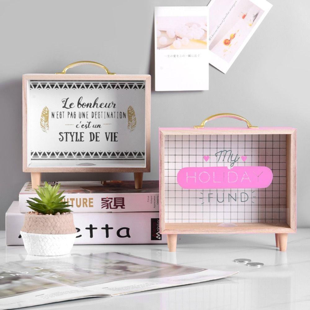 Lacyeszb ถังออมสินไม้ ทรงสี่เหลี่ยม สไตล์นอร์ดิก พร็อพถ่ายรูป สําหรับเด็ก