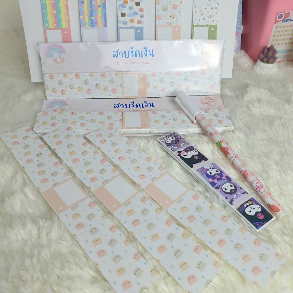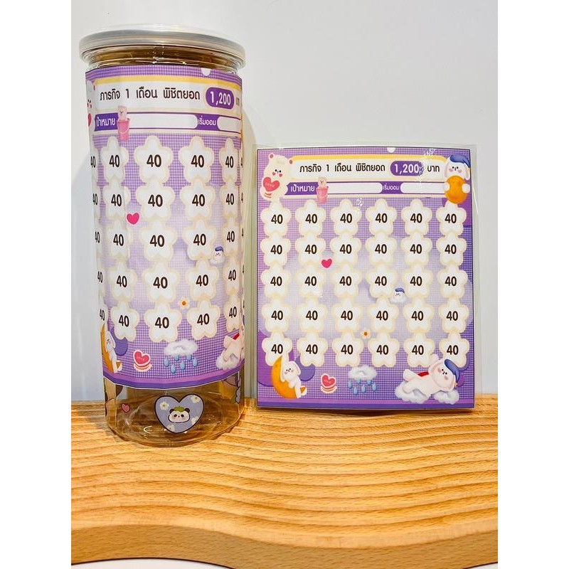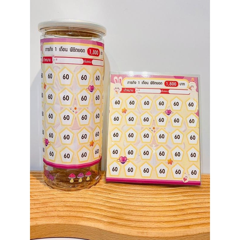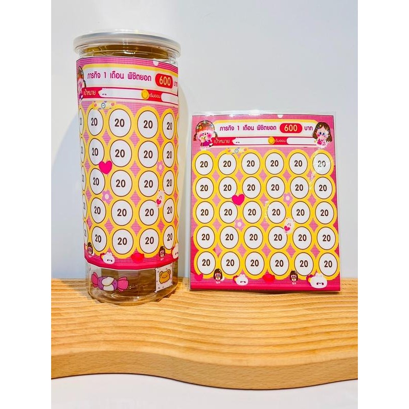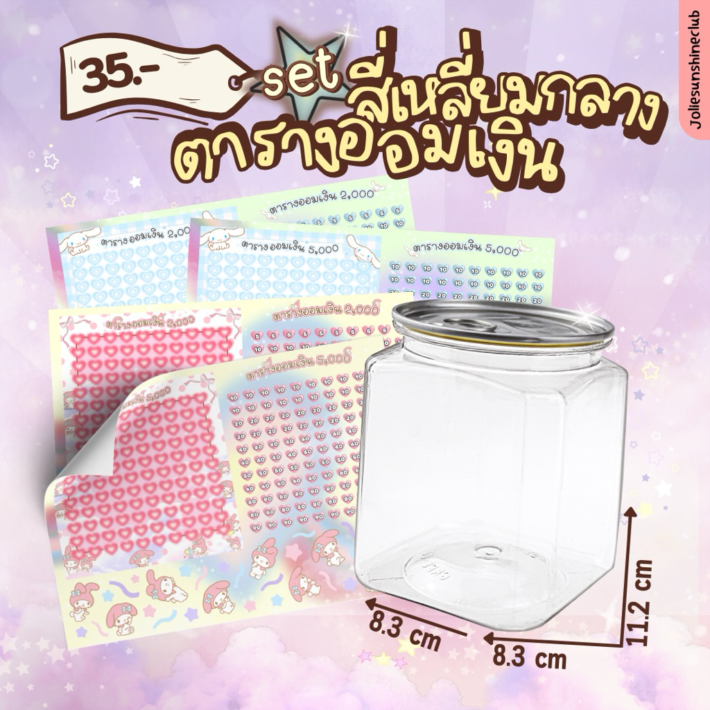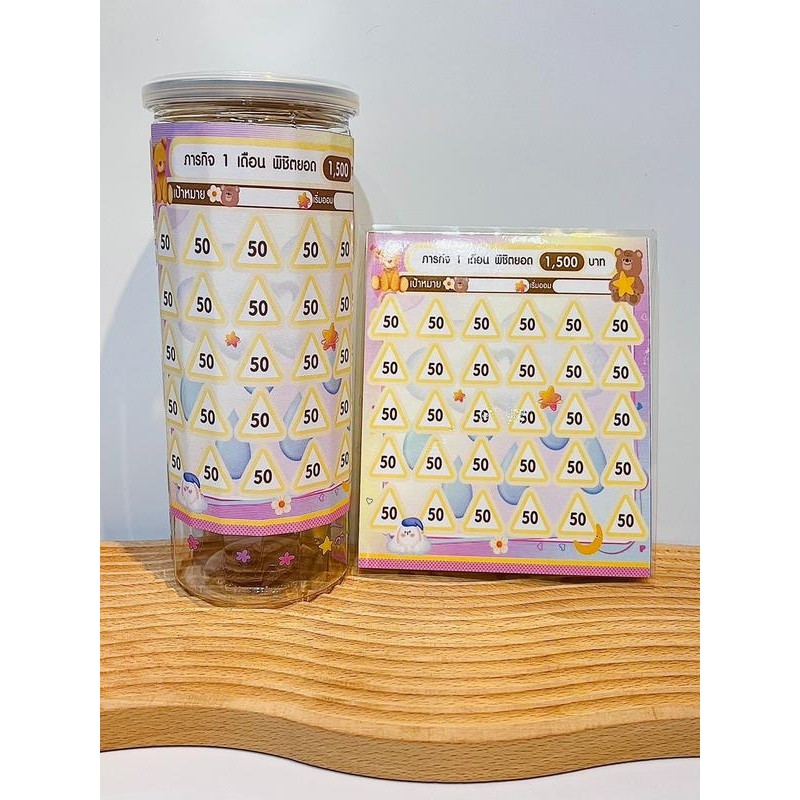 set สติกเกอร์ตารางออมเงินลายน่ารักบวกกระปุกออมสินสี่เหลี่ยมกลาง #ตารางออมเงิน #กระปุกออมสิน