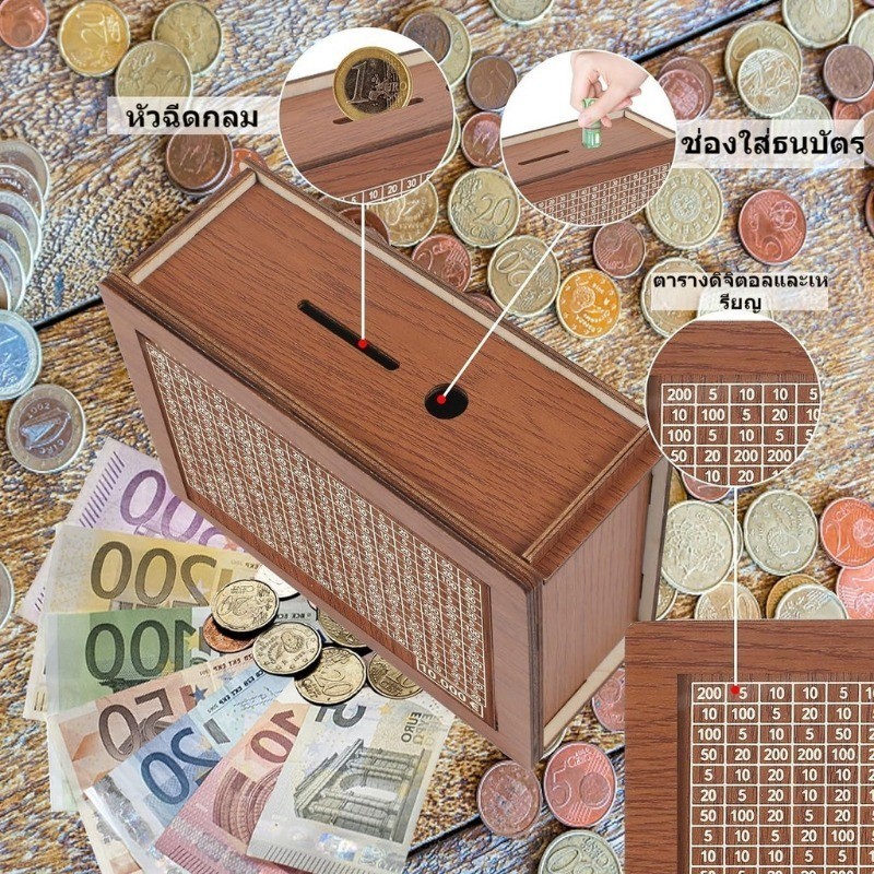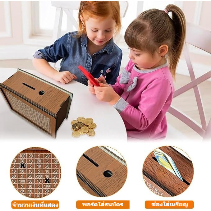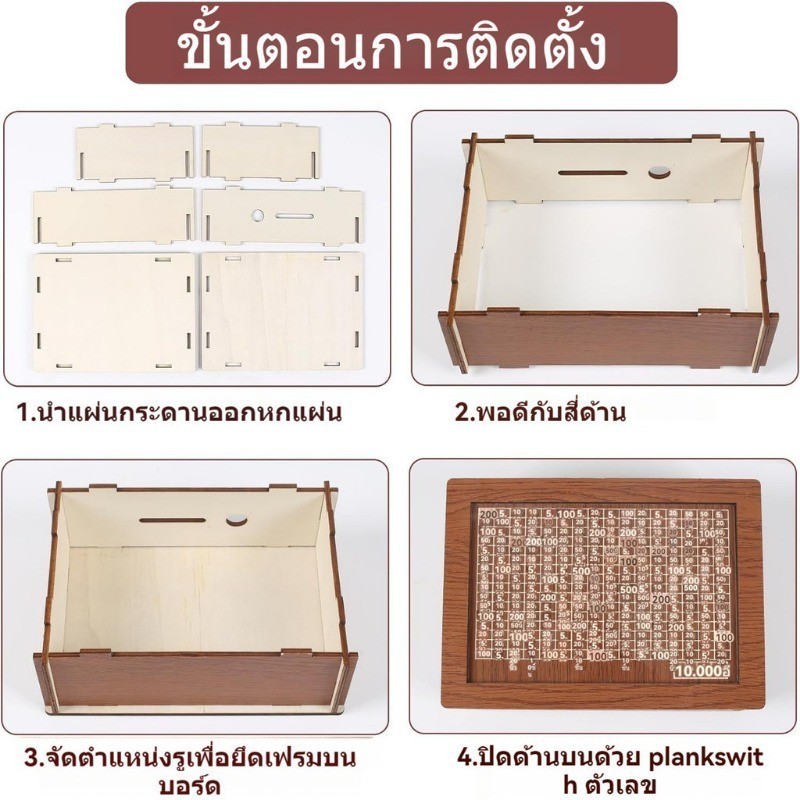 ส่งจากไทย กระปุกออมสินไม้ กล่องใส่เงิน ใช้ซ้ําได้ งานฝีมือ ออมทรัพย์ พร้อมเคาน์เตอร์ แฮนด์เมด กล่องใส่เงิน เด็ก กล่องท้าทายเงิน 10000 ไทย บาท