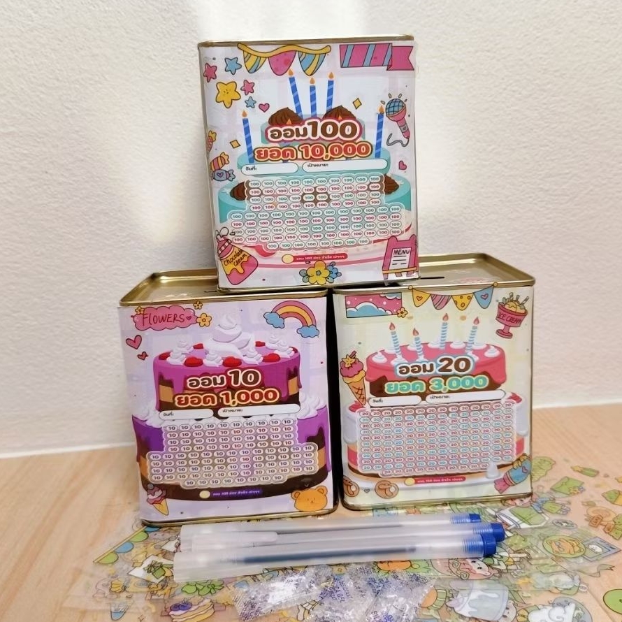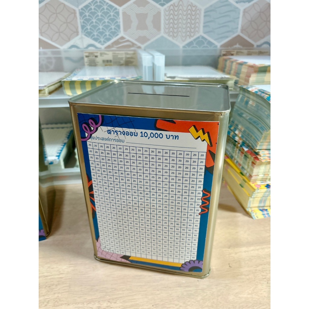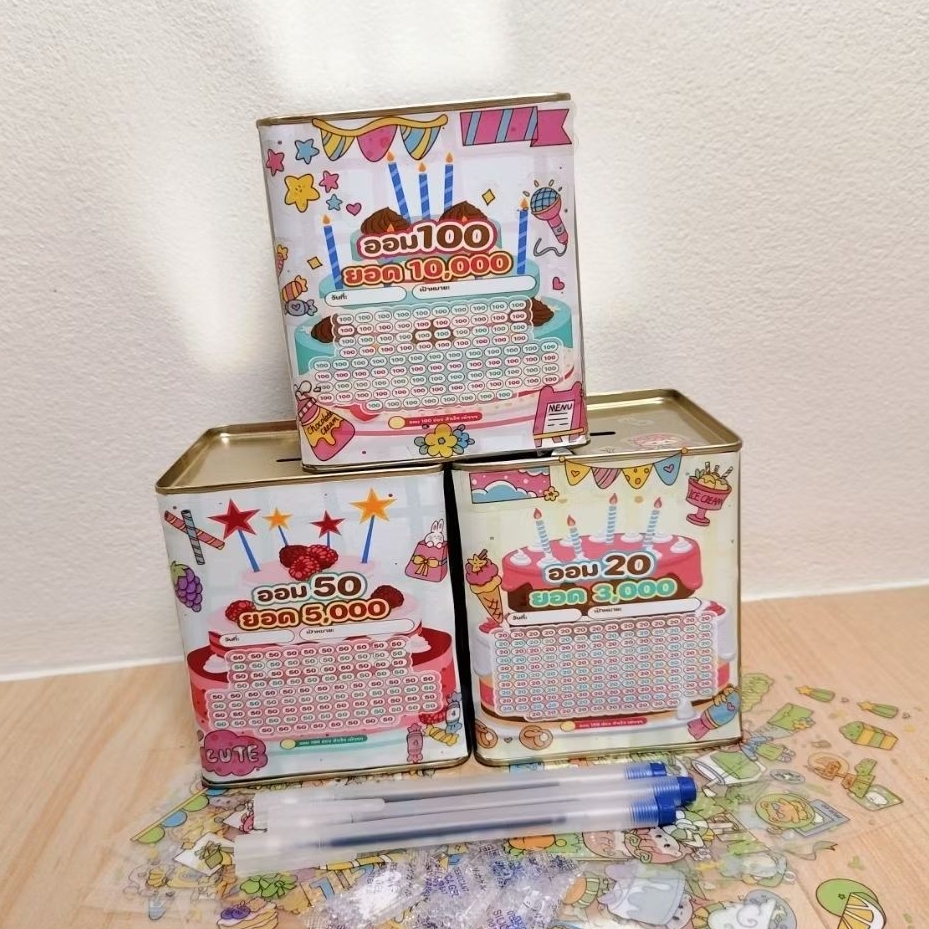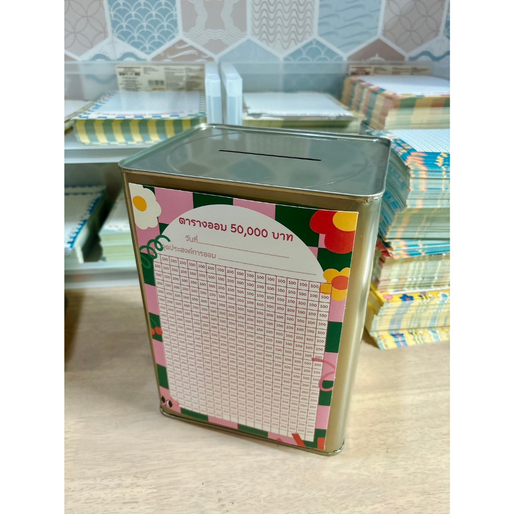 พร้อมส่งกระปุกปี๊บออมสิน ตารางออมหนึ่งแสน 100,000 ขนาด 15 Cm ทึบ ไม่มีที่เปิด
