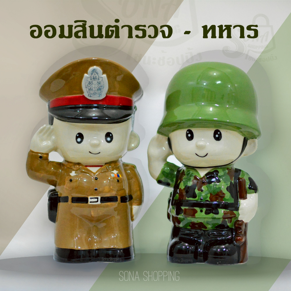 ออมสินคู่หูผู้พิทักษ์ตำรวจ-ทหาร วัสดุเซรามิคแข็งแรง ดีไซน์น่ารัก เหมาะเป็นของขวัญ ของแต่งบ้านหรือของฝาก