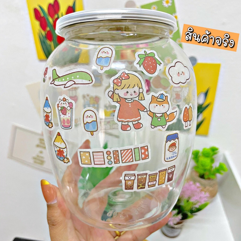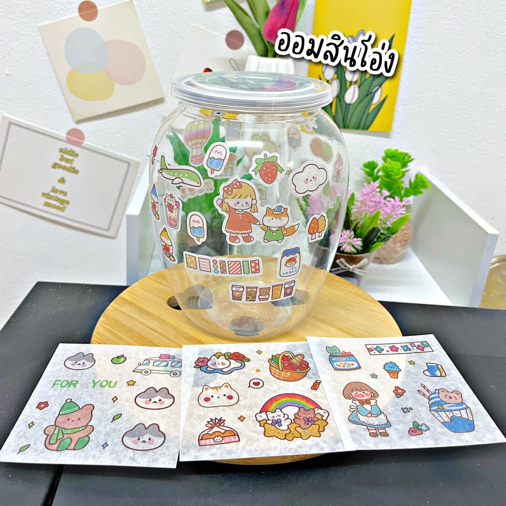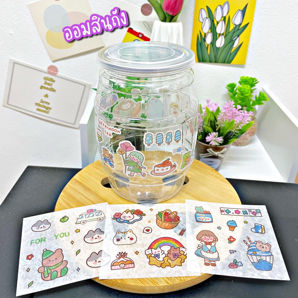 ใหม่!! กระปุกออมสินใส จัดเซ็ตสติ๊กเกอร์ “สีขุ่น” 4แผ่น ส่งไว สินค้าจริง ออมสินใส ออมสินแยกเหรียญ อ
